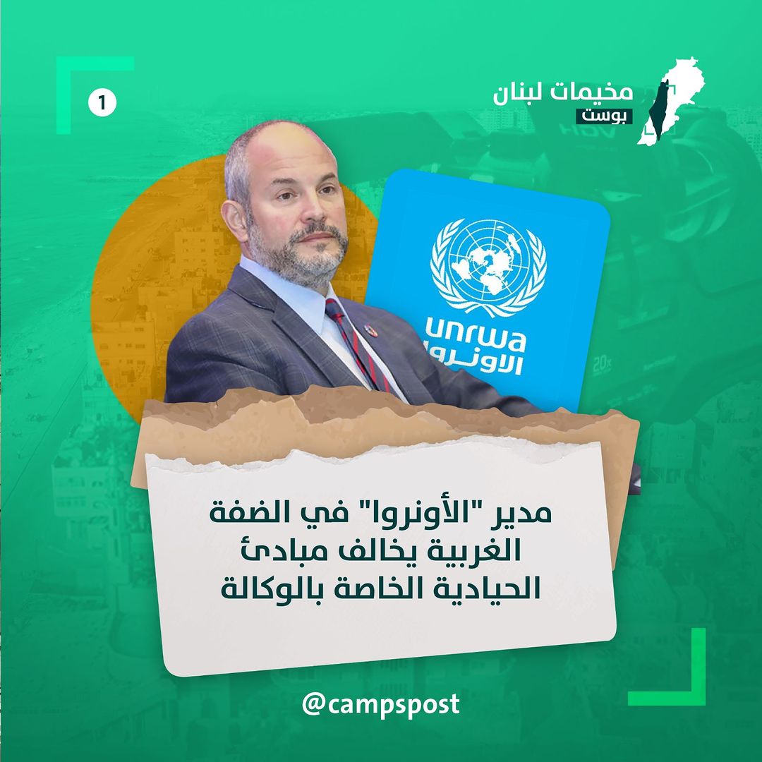 مدير “الأونروا” في الضفة الغربية يخالف مبادئ الحيادية الخاصة بالوكالة - مخيمات لبنان بوست