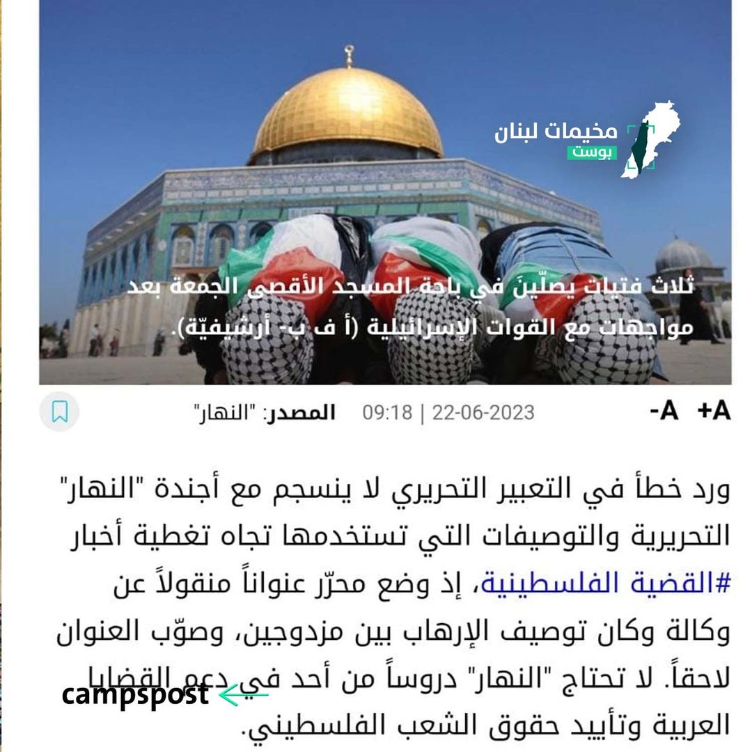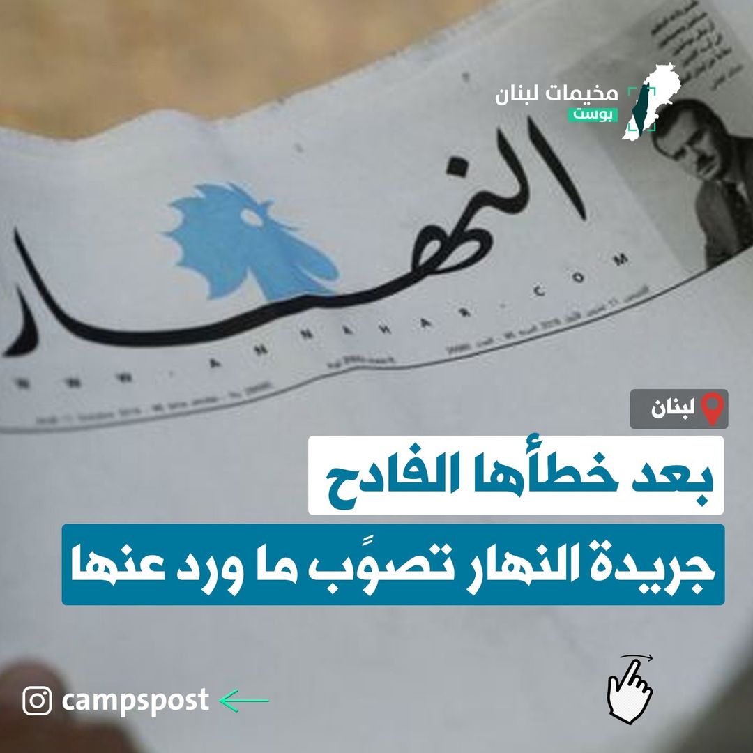 بعد خطأها الفادح جريدة النهار تصوب ما ورد عنها - مخيمات لبنان بوست
