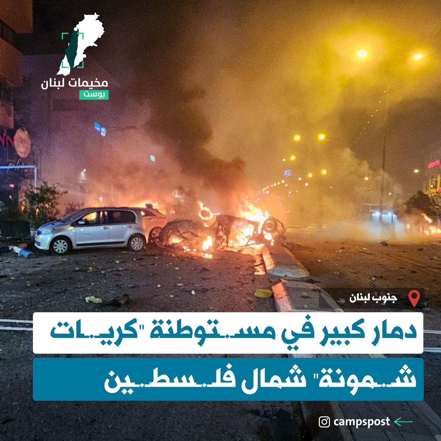 دمار كبير في مستوطنة كريات شمونة شمال فلسطين - مخيمات لبنان بوست