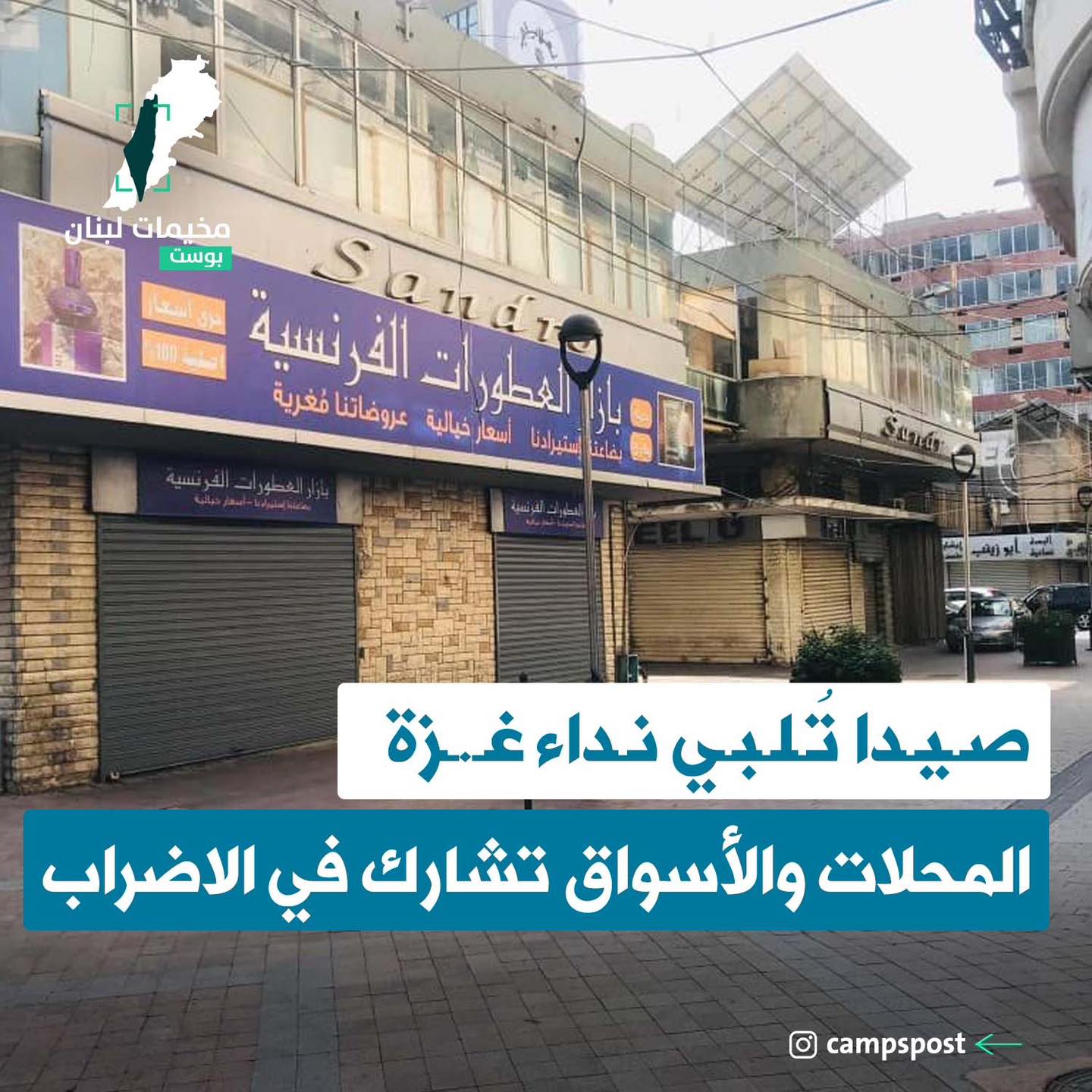 صيدا تلبي نداء غزة المحلات والأسواق تشارك في الاضراب - مخيمات لبنان بوست