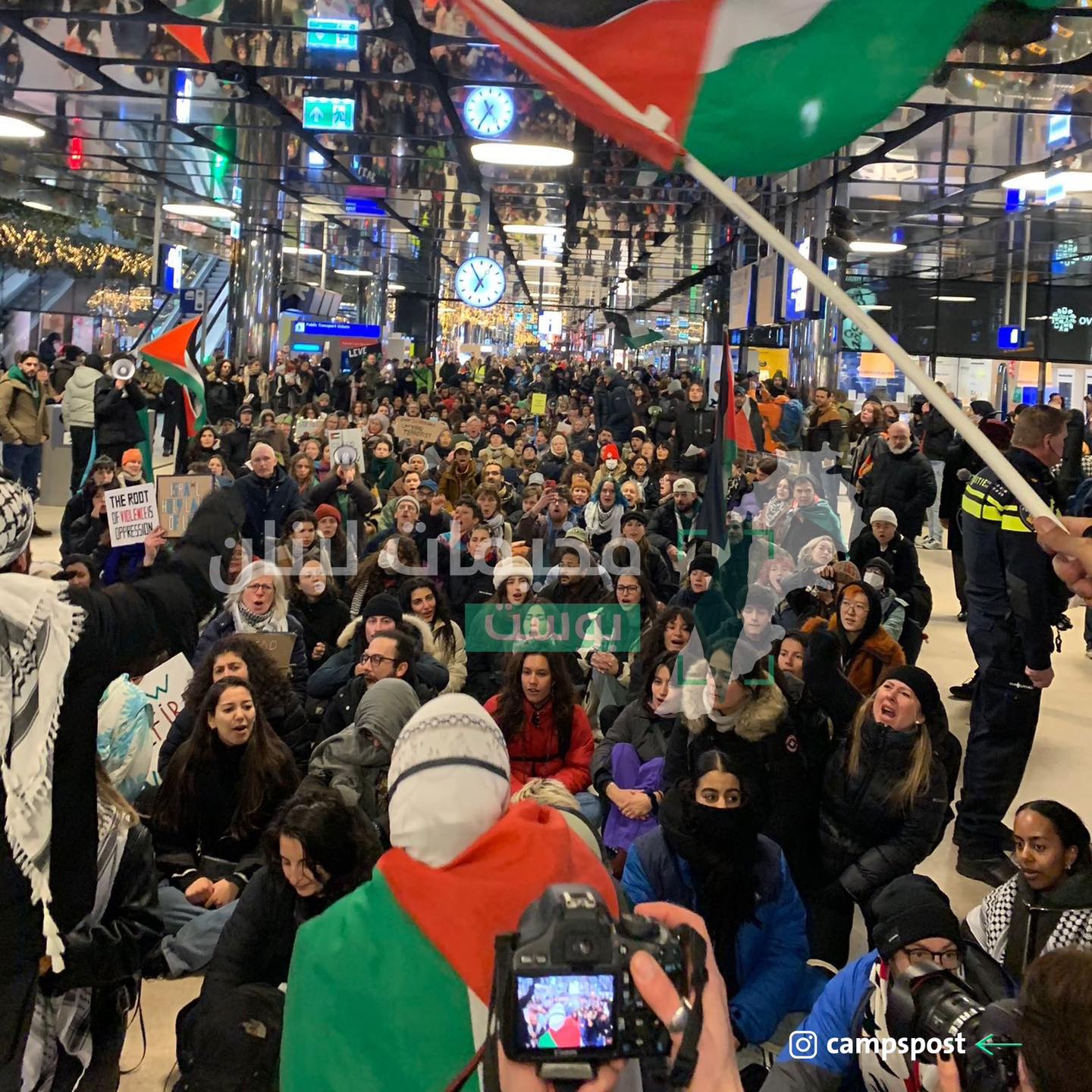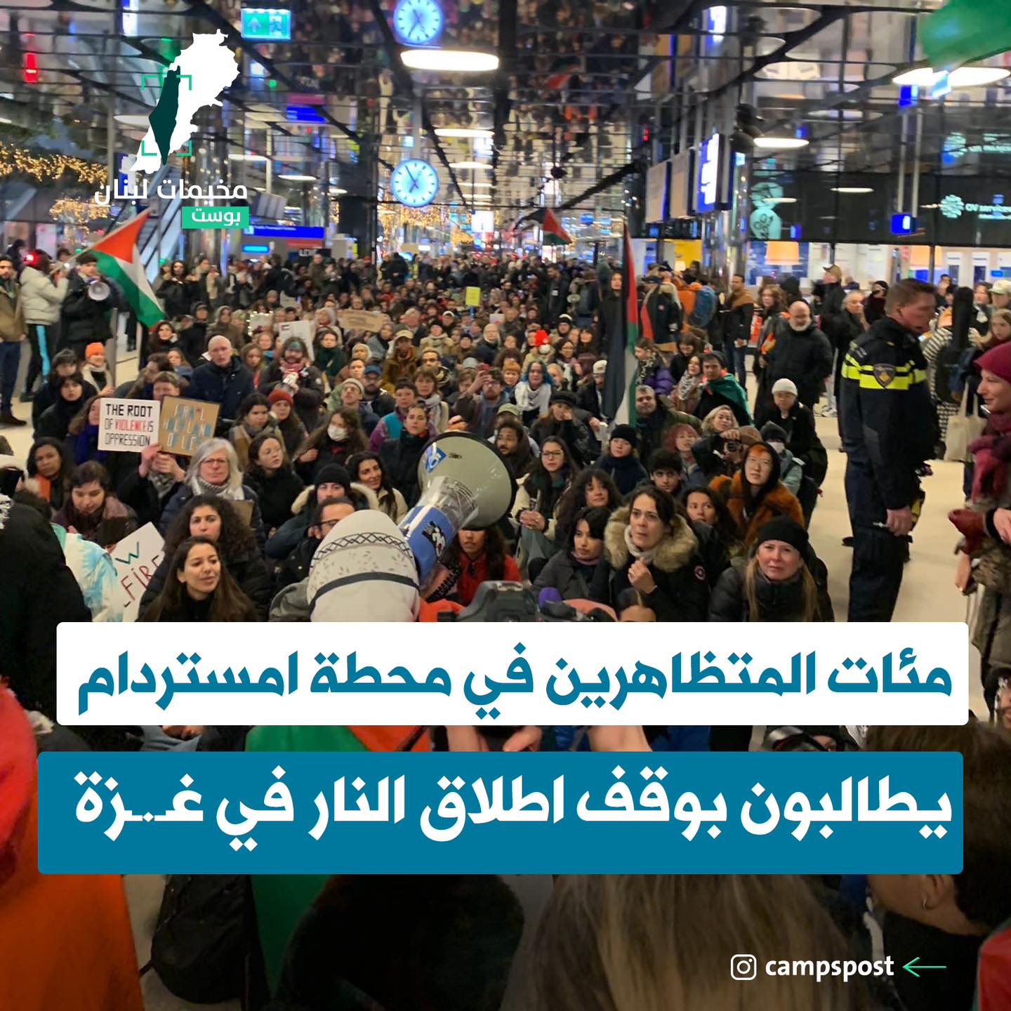مئات المتظاهري في محطة امستردام - مخيمات لبنان بوست