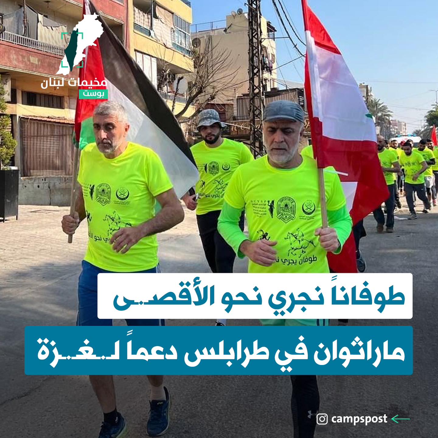 ماراثون في مدينة طرابلس شماليّ لبنان؛ تحت عنوان: “طـ.ـوفاناً يجري نحو الأقـ.ـصى”، دعمًا لغـ.ـزة.