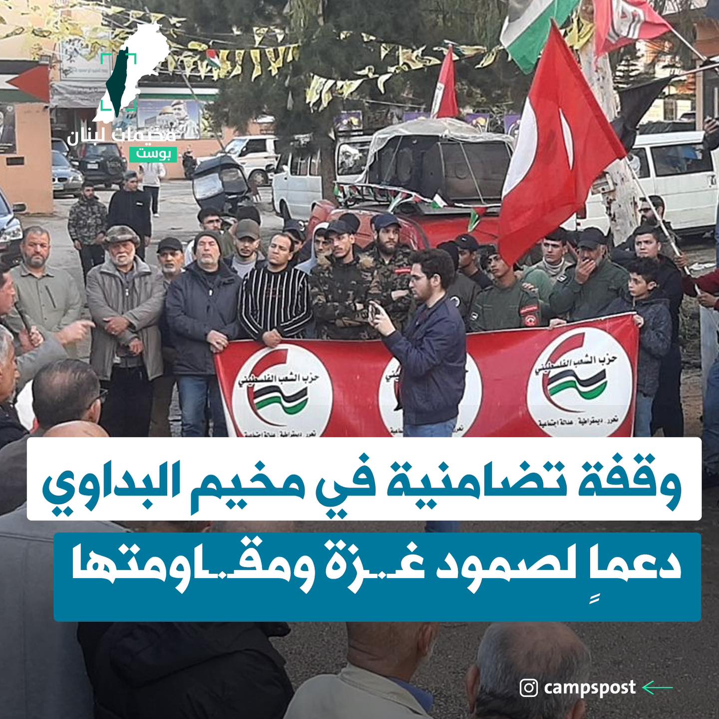 اعتصم عدد من أبناء مخيم البداوي دعماً لغـ.ـزة وصمودها، بدعوة من الفصائل والفعاليات الفلسطينية.