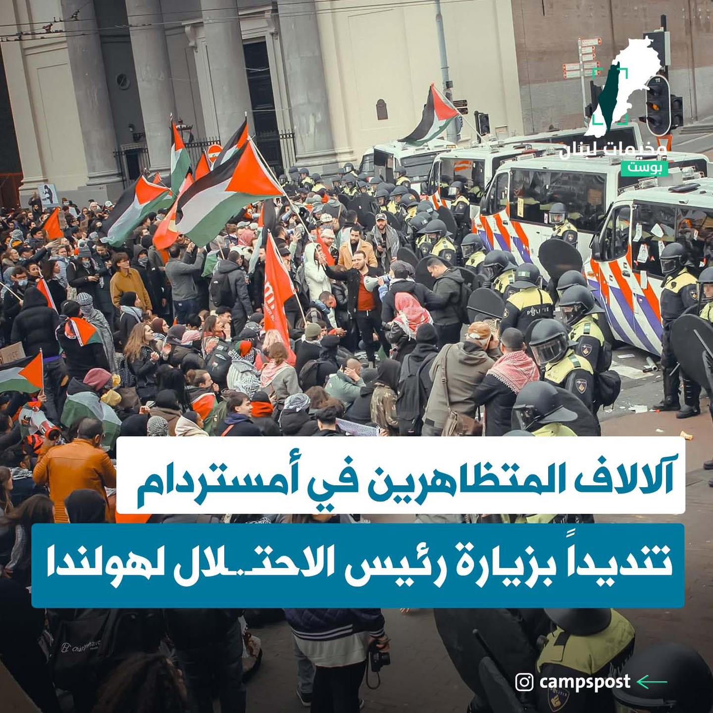 تظاهر الآلاف في العاصمة الهولندية أمستردام، أمس الأحد، رفضاً وتنديداً لزيارة رئيس الاحتـ.ـلال الى هولندا. حيث ندد المتظاهرون بهذه الزيارة، رافضين موقف بلادهم الداعم في ظل حرب الابادة التي تشهدها غـ.ـزة.