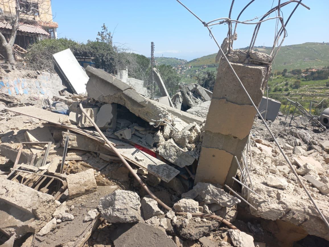 آثار الغارة على منزل في رب ثلاثين جنوبي لبنان