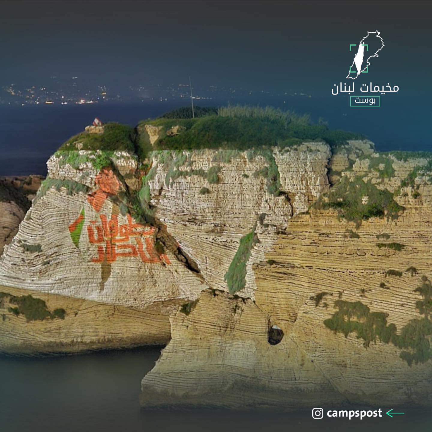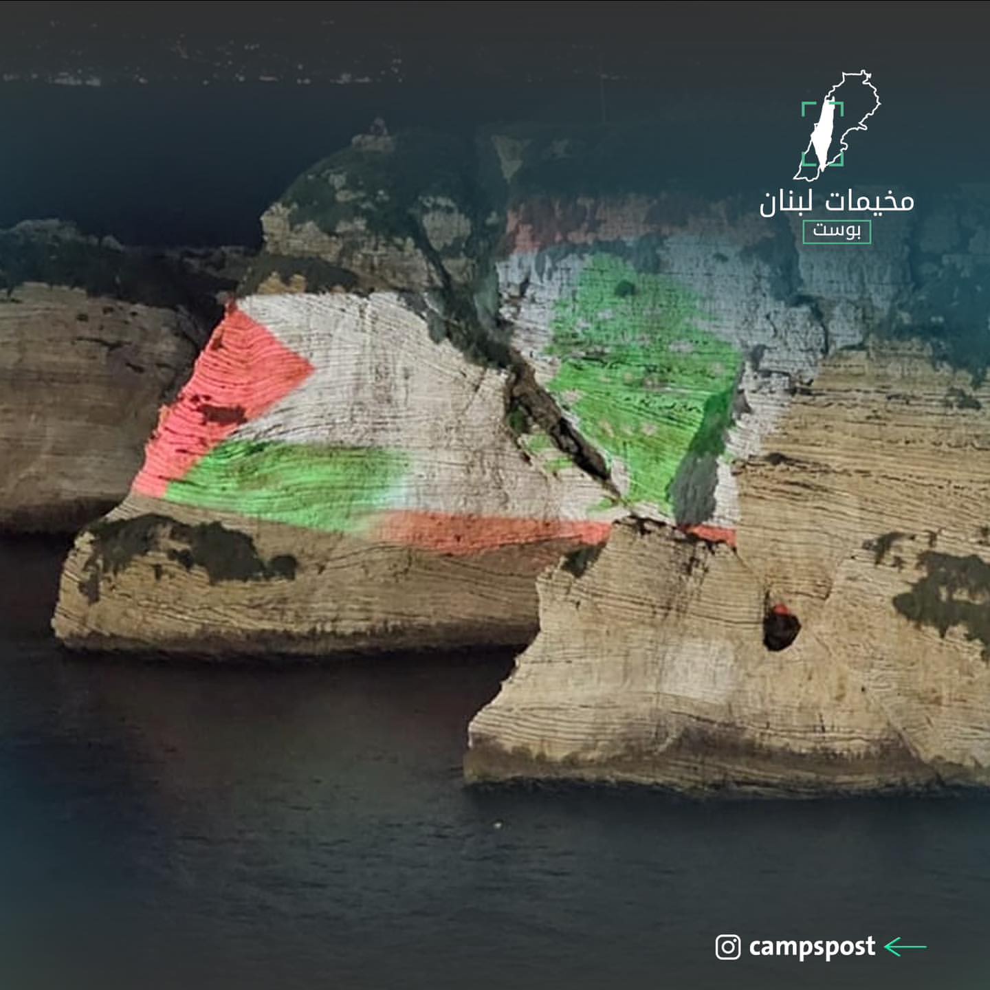 تزينت صخرة الروشة بالعلم الفلسطيني واللبناني