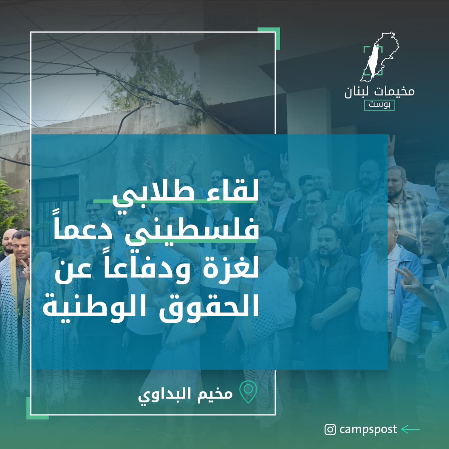نظَّمت القوى الطلابية الفلسطينية المستقلة، لقاءً تضامنيًا مع غـ.ـزة ودفاعًا عن الانتماء الوطني الفلسطيني، استضافت خلاله لجنة اتحاد المعلمين المركزية، بحضور فعاليات فصائلية، اجتماعية، أهلية وطلابية.