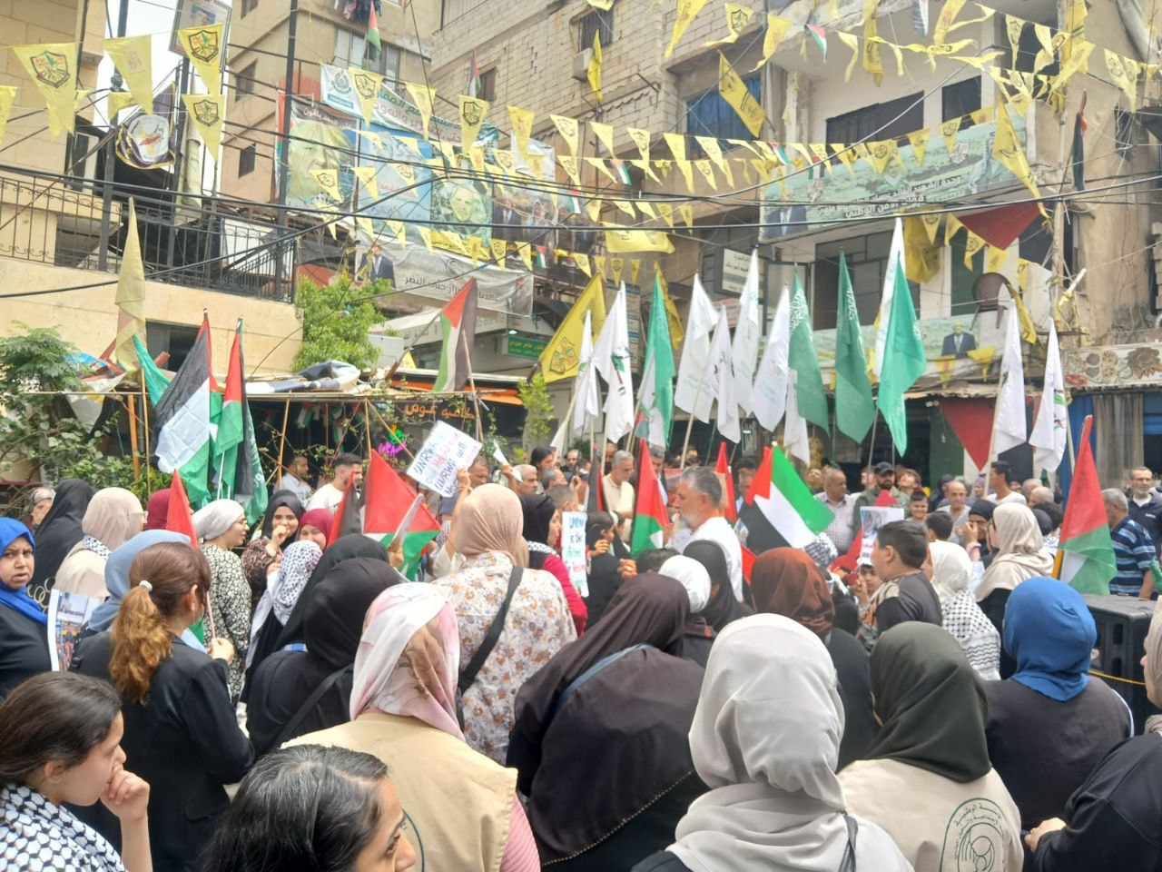 اعتصم مئات الفلسطينيين في مخيم برج البراجنة اليوم الجمعة، دعماً لغزة، ومساندة لمقاومتها،