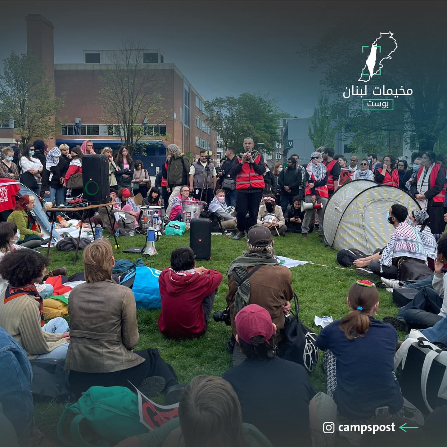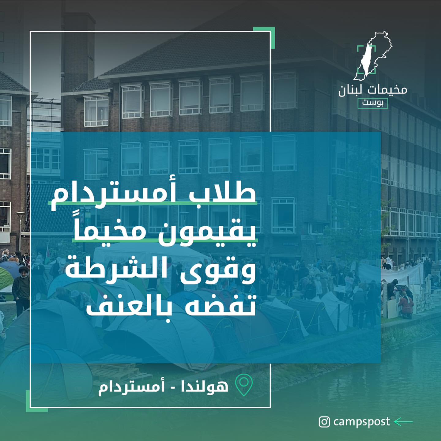 الاحتجاجات بدأت من مخيم طلابي يوم الاثنين الماضي في أمستردام، حيث فضّته قوى الشرطة بالعنف، حيث ما لبث حتى تظاهر الالاف في مكان المخيم ضد العنـ.ـف، اضافةً الى امتداد الحراك الى جامعات أخرى.