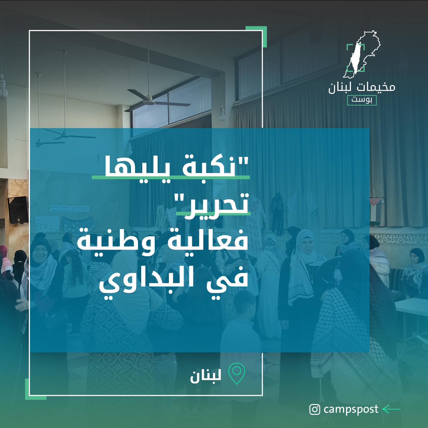 “نكبة يليها التحرير” فعالية وطنية في مخيم البداوي؛ نظَّمتها الرابطة الإسلامية لطلبة فلسطين، كشافة الإسراء وجمعية أغاريد، إحياءً للذكرى الـ76 للنكبة الفلسطينية، تخللها محاضرة دينية مع رئيس هيئة علماء فلسطين – فرع لبنان “الشيخ محمود صديق”، إضافةً لفقرات وطنية تراثية.