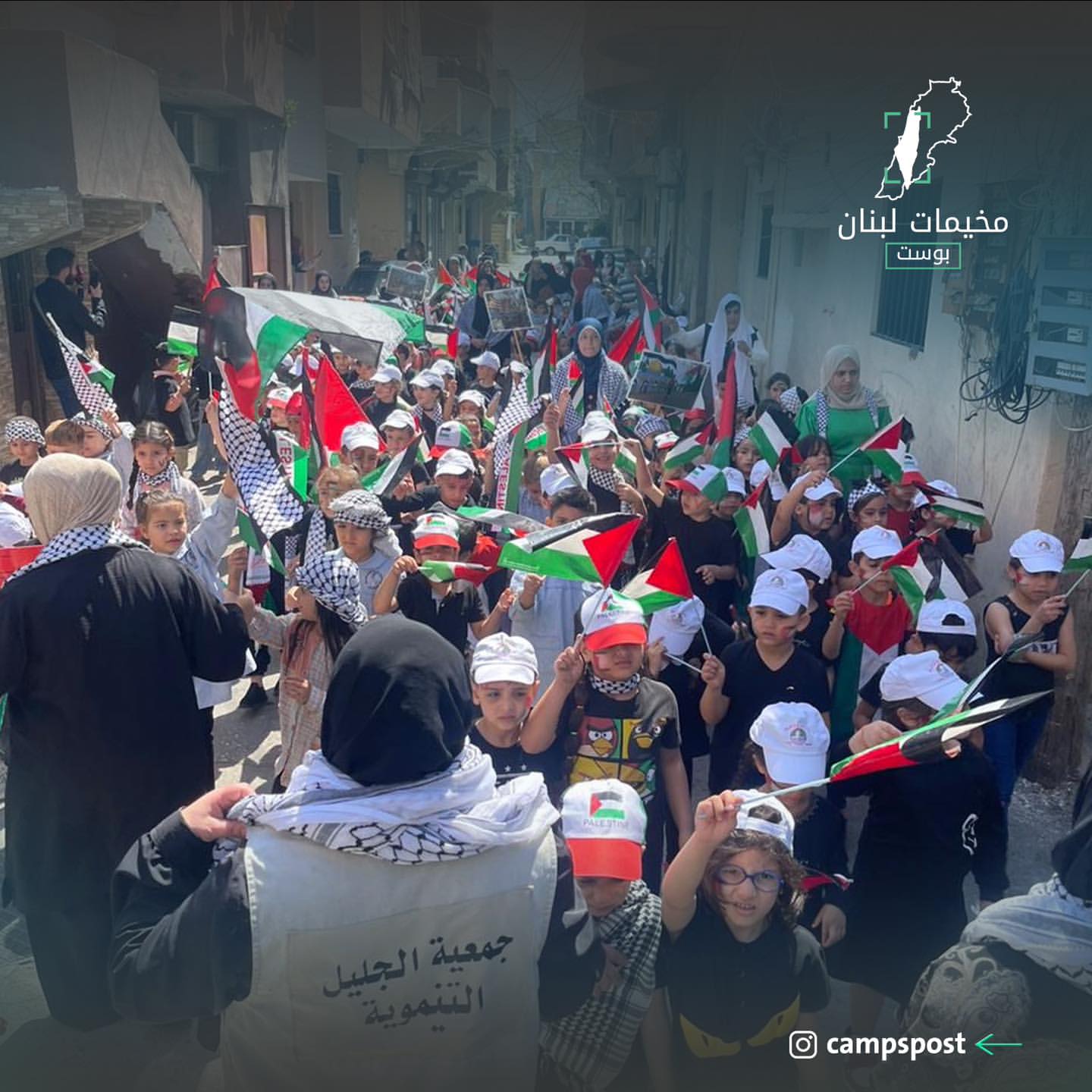 من مخيم الرشيدية مسيرة لأطفال الروضات والمؤسسات التربوية إحياءً لذكرى النـ.ـكبة