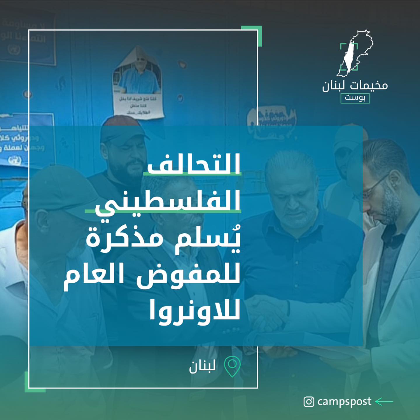 تسليم المذكرة التي أرسلتها قيادة تحالف القوى الفلسطينية والقوى الإسلامية وأنصار الله للمفوض العام السيد فليب لازريني عبر مسؤول العلاقات العامة والإعلام في وكالة الأونروا السيد فادي الطيار بعد الاعتصام الشعبي الذي أقيم أمام مقر الأونروا الرئيسي في بيروت