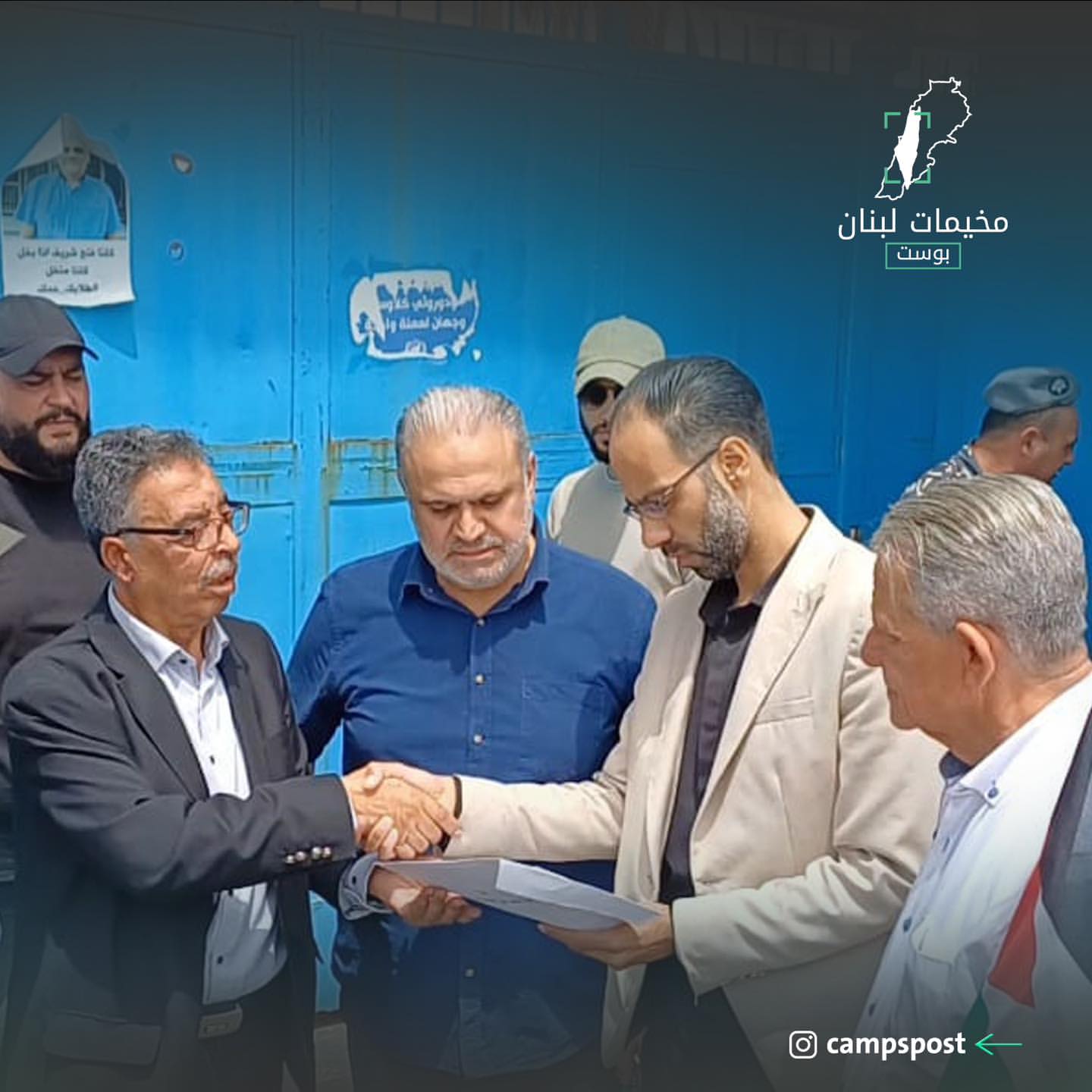 تسليم المذكرة التي أرسلتها قيادة تحالف القوى الفلسطينية والقوى الإسلامية وأنصار الله للمفوض العام السيد فليب لازريني عبر مسؤول العلاقات العامة والإعلام في وكالة الأونروا السيد فادي الطيار بعد الاعتصام الشعبي الذي أقيم أمام مقر الأونروا الرئيسي في بيروت