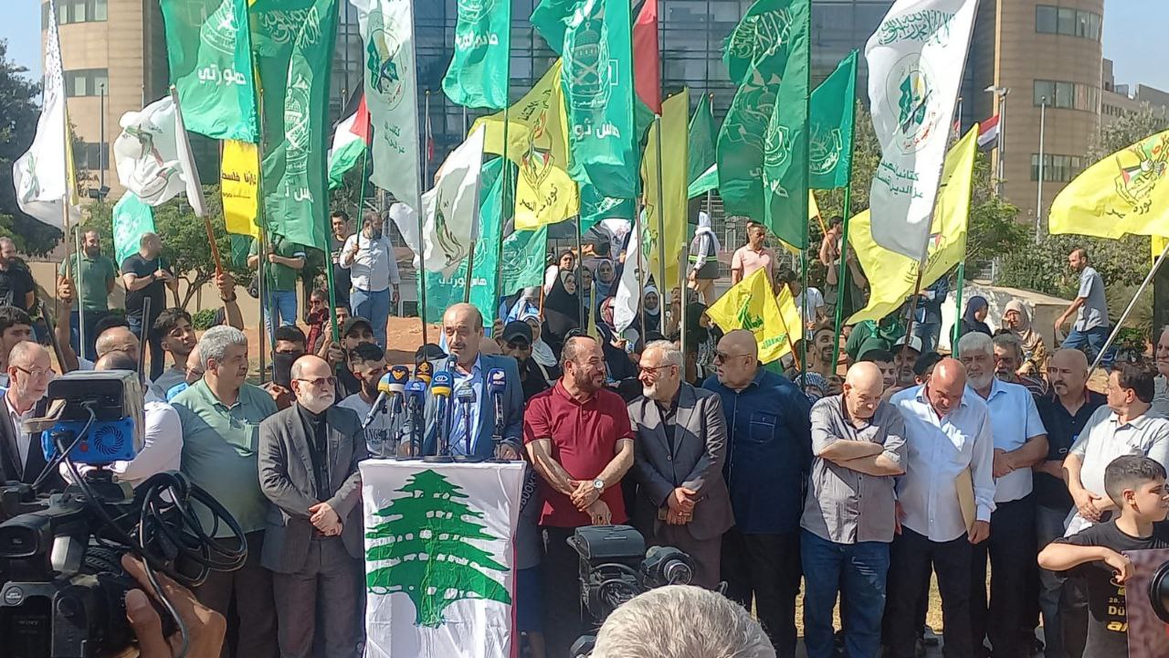 صور من الوقفة التضامنية التي نظّمتها الأحزاب اللبنانية مع التحالف الفلسطيني أمام مقر الأونروا (الأسكوا) في العاصمة اللبنانية بيروت، تضامناً مع غزة واستنكاراً لمجزرة النصيرات.