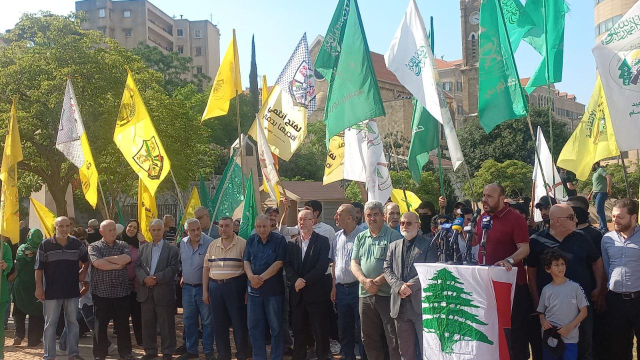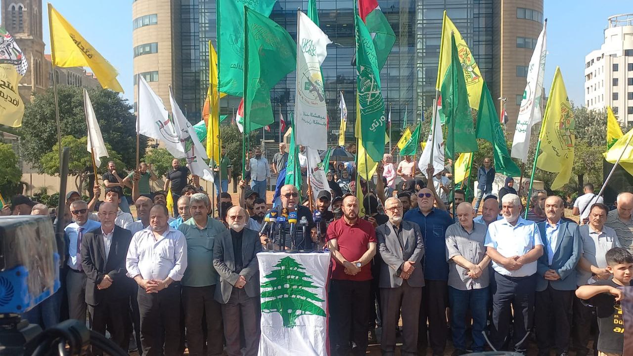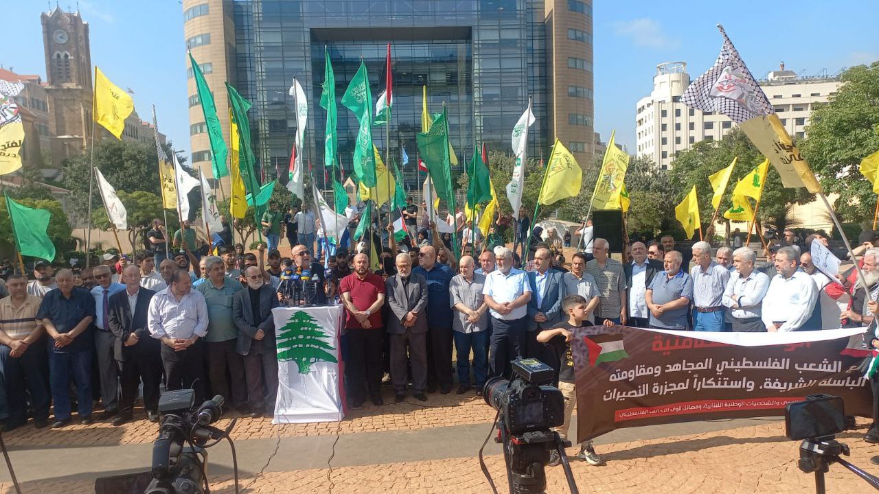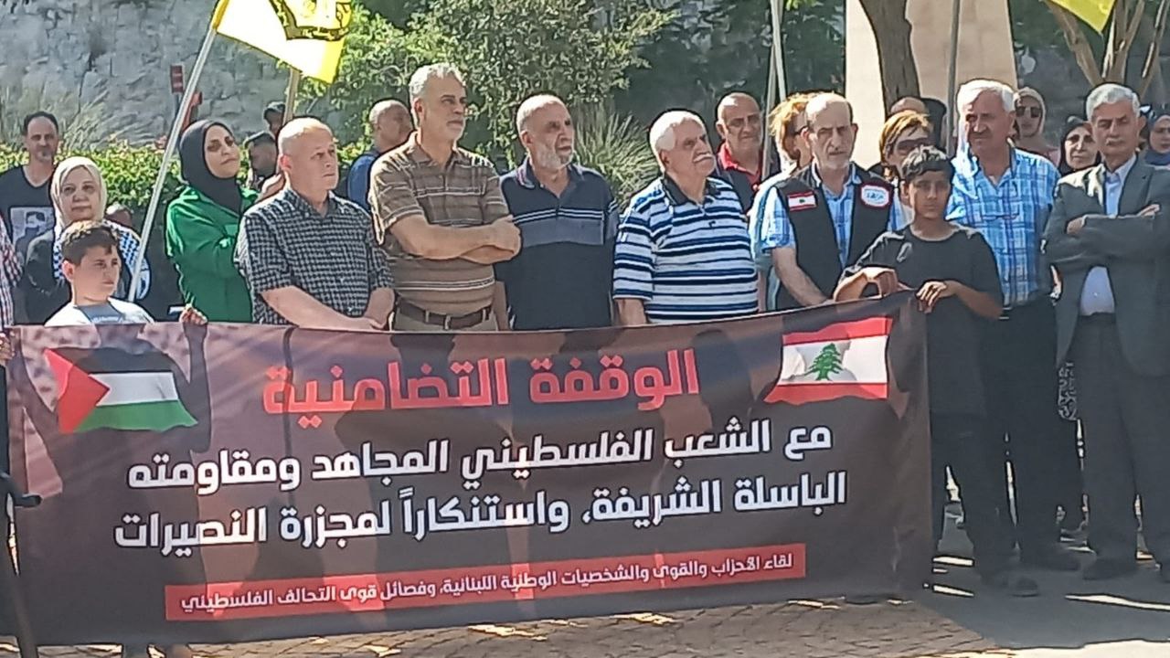 صور من الوقفة التضامنية التي نظّمتها الأحزاب اللبنانية مع التحالف الفلسطيني أمام مقر الأونروا (الأسكوا) في العاصمة اللبنانية بيروت، تضامناً مع غزة واستنكاراً لمجزرة النصيرات.
