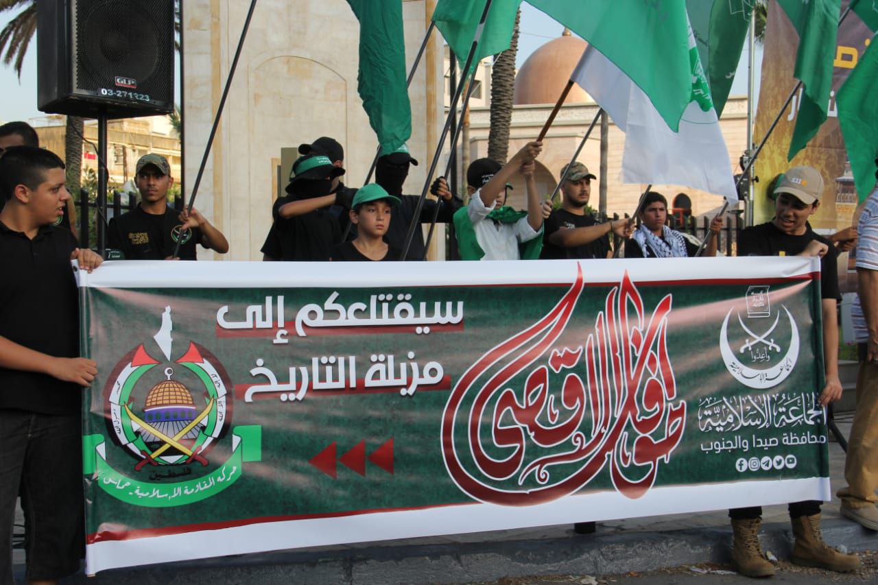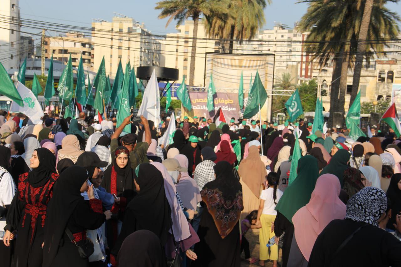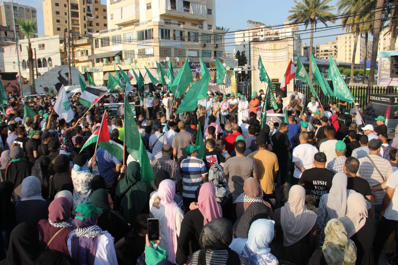 اعتصام جماهيري لحركة حماس والجماعة الإسلامية في مدينة صيدا دعمًا لمعركة طوفان الأقصى واستنكارًا لمجازر الاحتلال الإسرائيلي بحق الشعب الفلسطيني