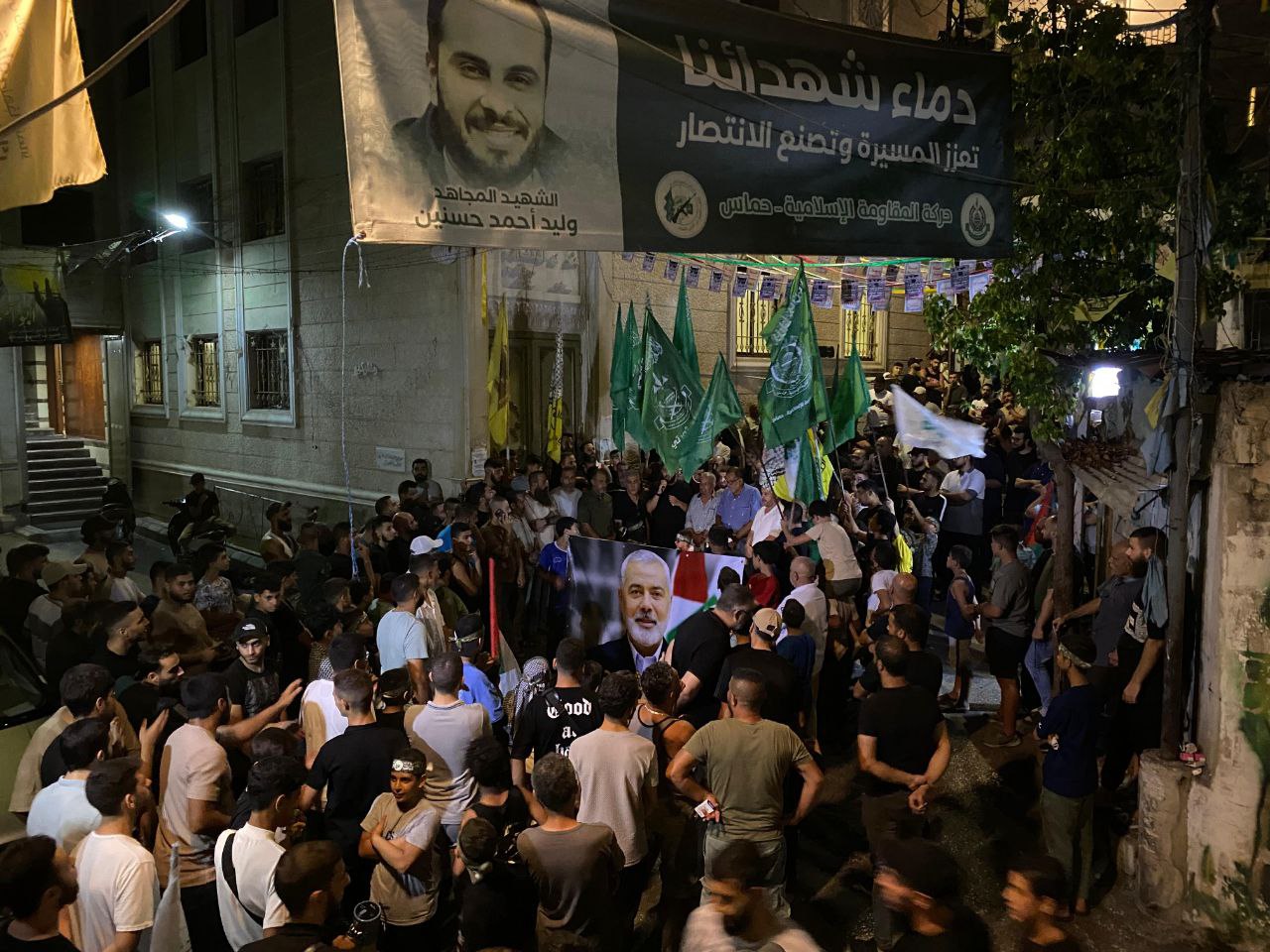 مسيرة جماهيرية حاشدة في مخيم المية ومية بمدينة صيدا جنوبيّ لبنان، استنكارا لاغتيال القائد المجاهد “إسماعيل هنية”.