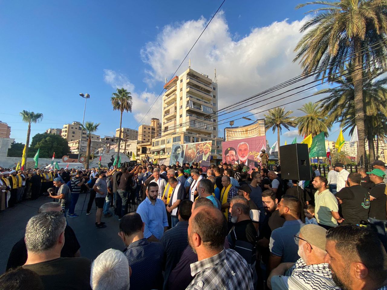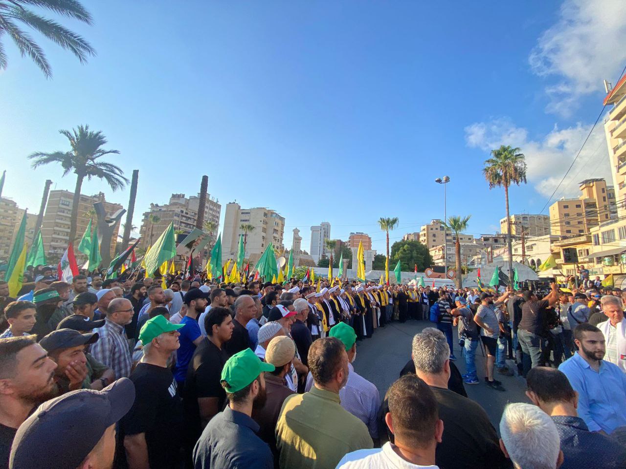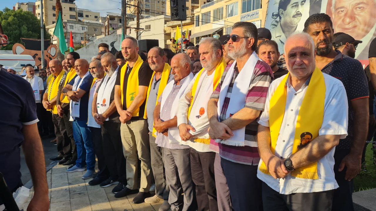 وقفة غضب لحركة حماس وحزب الله في مدينة صيدا جنوب لبنان، تنديدًا باغتيال قادة المقاومة الفلسطينية واللبنانية.