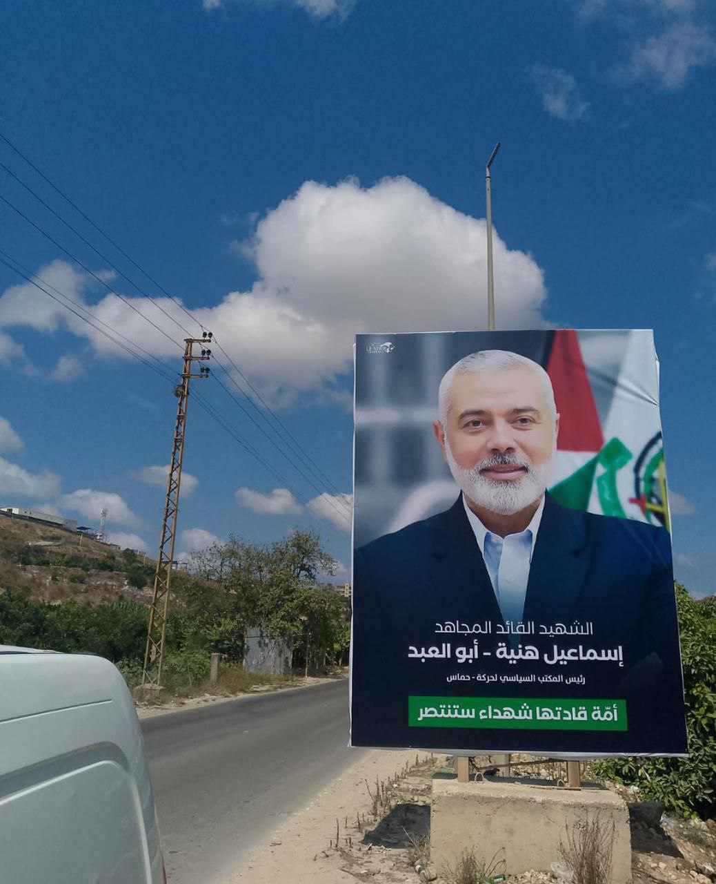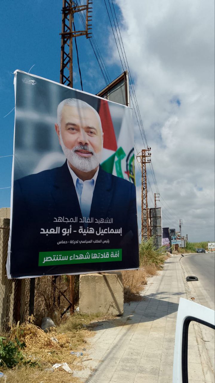 أكثر من 15 جدارية كبيرة للشهيد القائد إسماعيل هنيّة أبو العبد تُزيّن جميع مداخل مدينة صور جنوبي لبنان.