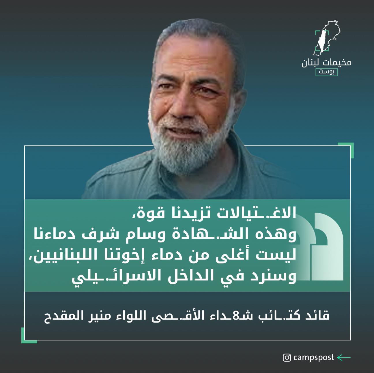 هكذا عبّر القائد منير المقدح، في أول تصريح إعلامي له بعد اغتيال أخيه القائد “خليل المـ.ـقدح” حيث شدد على الاستمرار في دعم المـ.ـقاومة ومواجهة الاحـ.ـتلال.