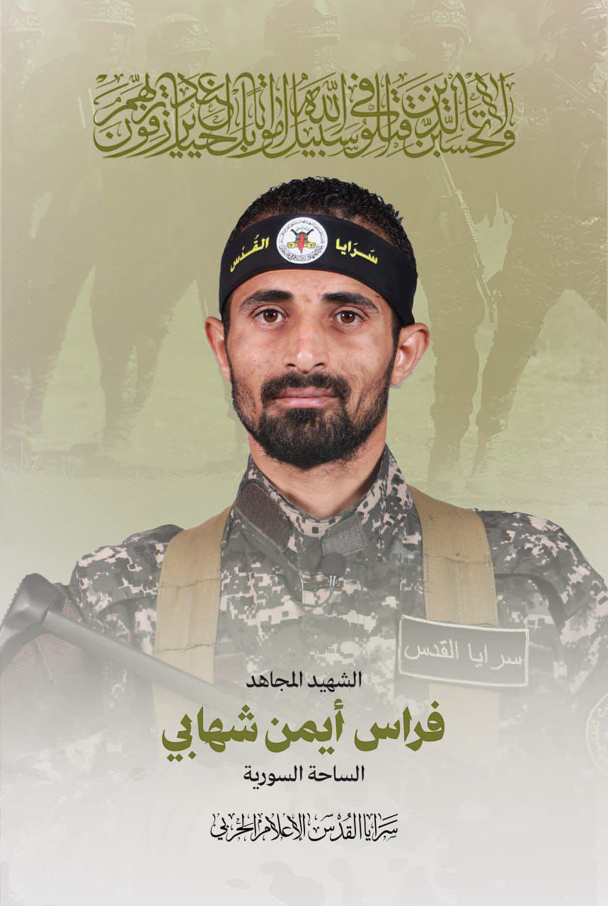 بسم الله الرحمن الرحيم “فَرِحِينَ بِمَا آتَاهُمُ اللَّهُ مِن فَضْلِهِ وَيَسْتَبْشِرُونَ بِالَّذِينَ لَمْ يَلْحَقُوا بِهِم مِّنْ خَلْفِهِمْ أَلَّا خَوْفٌ عَلَيْهِمْ وَلَا هُمْ يَحْزَنُونَ ” صدق الله العظيم بأسمى آيات الفخر والاعتزاز تزُف سرايا القدس الجناح العسكري لحركة الجهاد الإسلامي في فلسطين إلى شعبنا الفلسطيني المجاهد وإلى الأمتين العربية والإسلامية: – الشهيد المجاهد سمير مصطفى دياب (31 عام). – الشهيد المجاهد فراس أيمن شهابي (31 عام). من أبطال كتيبة الشهيد علي الأسود – ساحة سورية. والذين ارتقوا على حدود فلسطين المحتلة في جنوب لبنان ضمن معركة طوفان الأقصى أثناء أدائهم لواجبهم القتالي، وتؤكد سرايا القدس أنها ستبقى ثابتة على درب الجهاد والمقاومة حتى التحرير والعودة. ” وإنّه لجهاد نصرٌ أو استشهــــاد ” ســــرايا القــــــــــدس 21 ربيع الأول 1446 هــــ الموافق 24 – 9 – 2024 ..