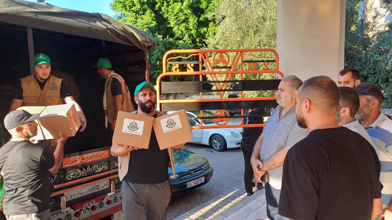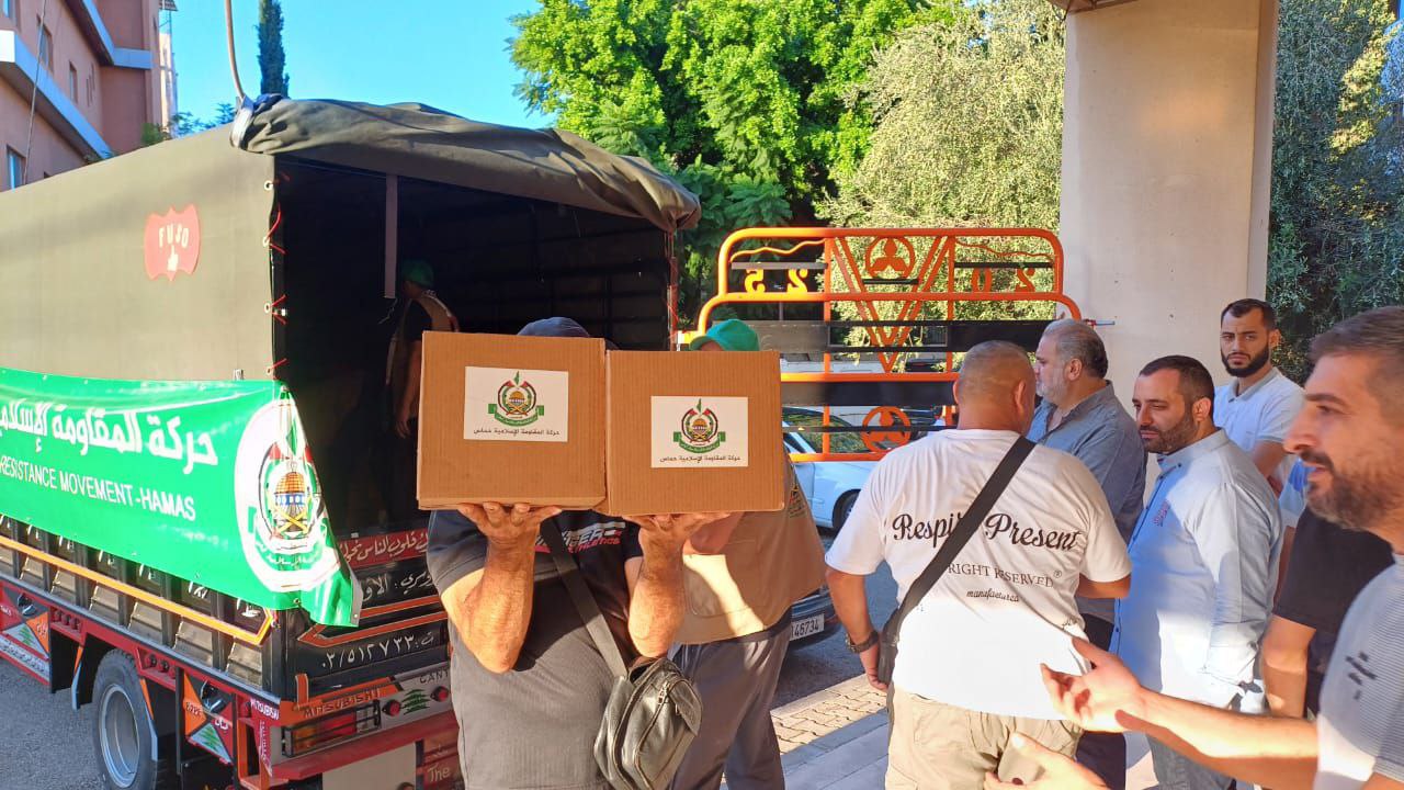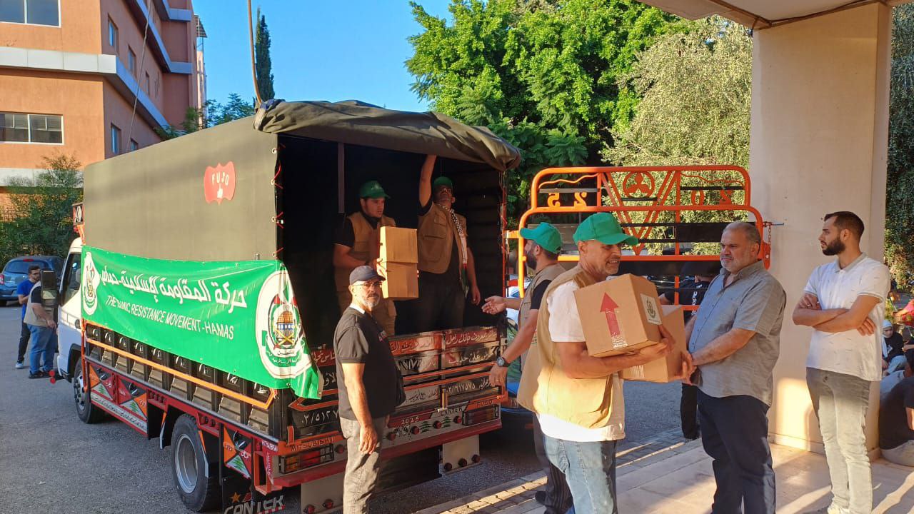 حركة حمــــــــاس تقدم مساعدات عاجلة للأخوة للنازحين من الجنوب الصامد على مركز إيواء الجامعة اللبنانية في مدينة صيدا، ومركز إيواء في عين الدلب شرق مدينة صيدا، وذلك دعما لصمودهم في مواجهة العــدوان الصهيـوني الغاشم.
