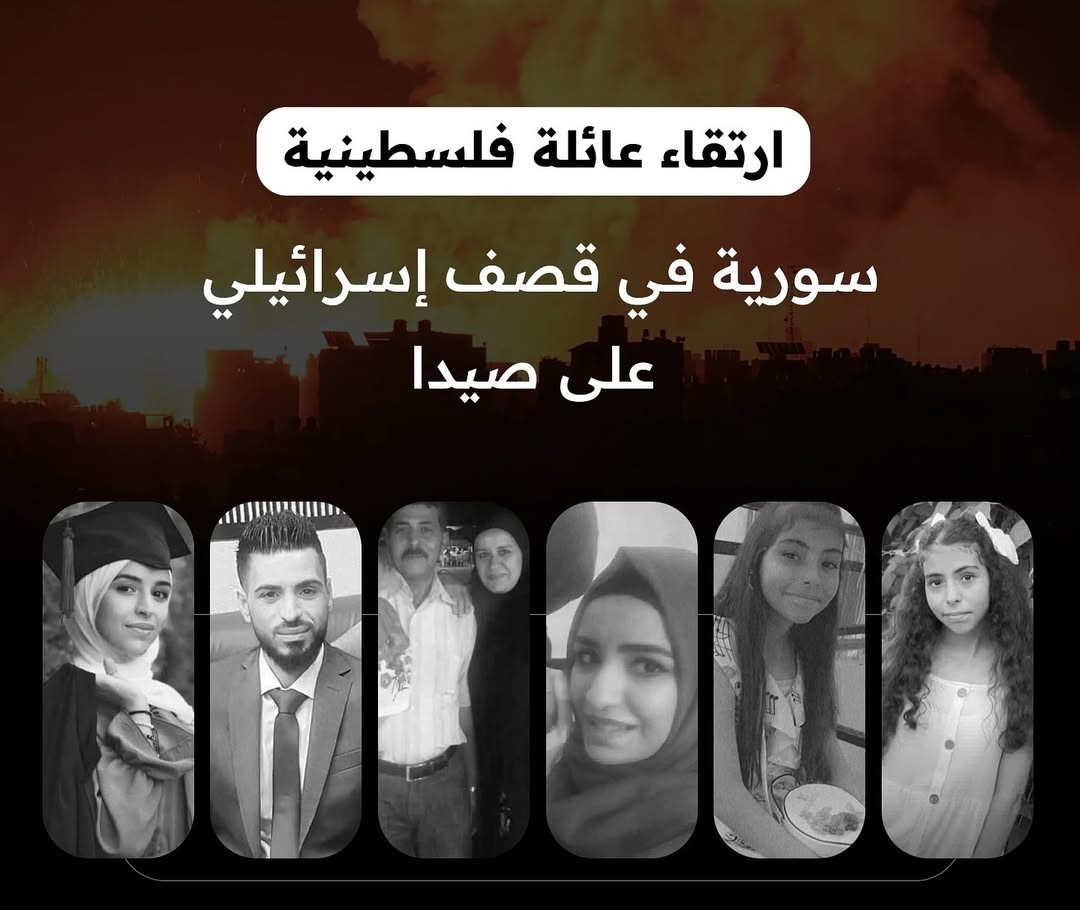 عائلة فلسطينية من أبناء مخيم النيرب للاجئين الفلسطينيين في حلب شمال سوريا، استشهدت في المجزرة التي ارتكبها الاحتلال “الإسرائيلي” في منطقة عين الدلب في صيدا جنوب لبنان، إثر استهدافه مبنى سكني |