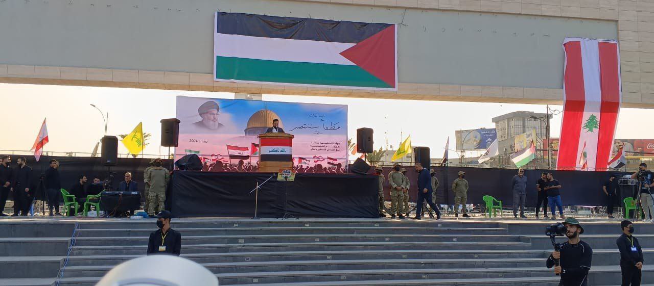 وقفة جماهيرية في العاصمة العراقية بغداد تنديداً بالحرب الإسرائيلية على فلسطين المحتلة ولبنان، واستنكاراً لتجاوزات الاحتلال على المرجعيات الدينية.
