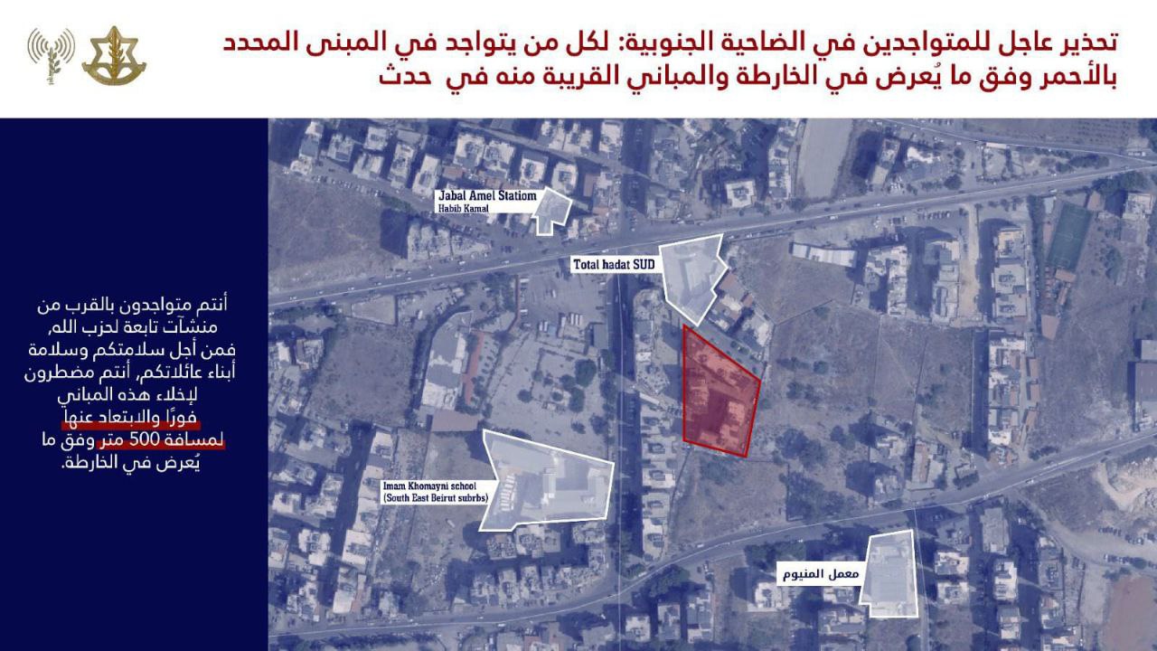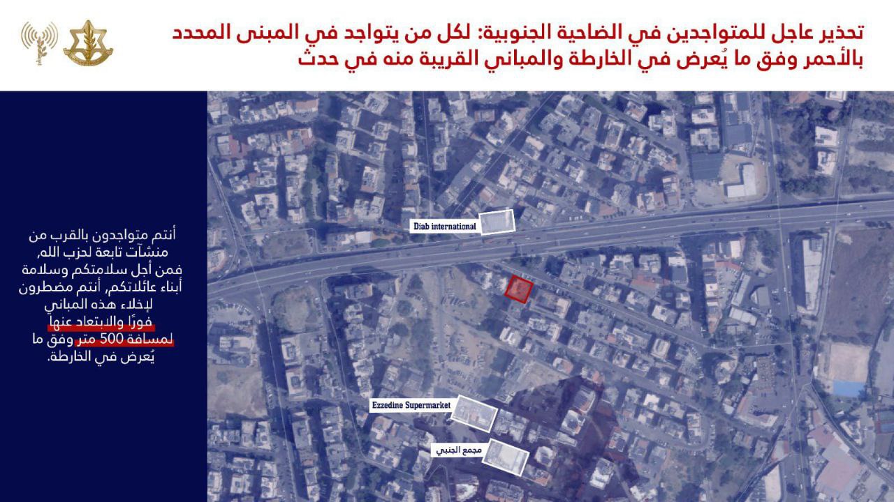 الاحتلال يهدد عدة مناطق في الضاحية ويطالب باخلائها
