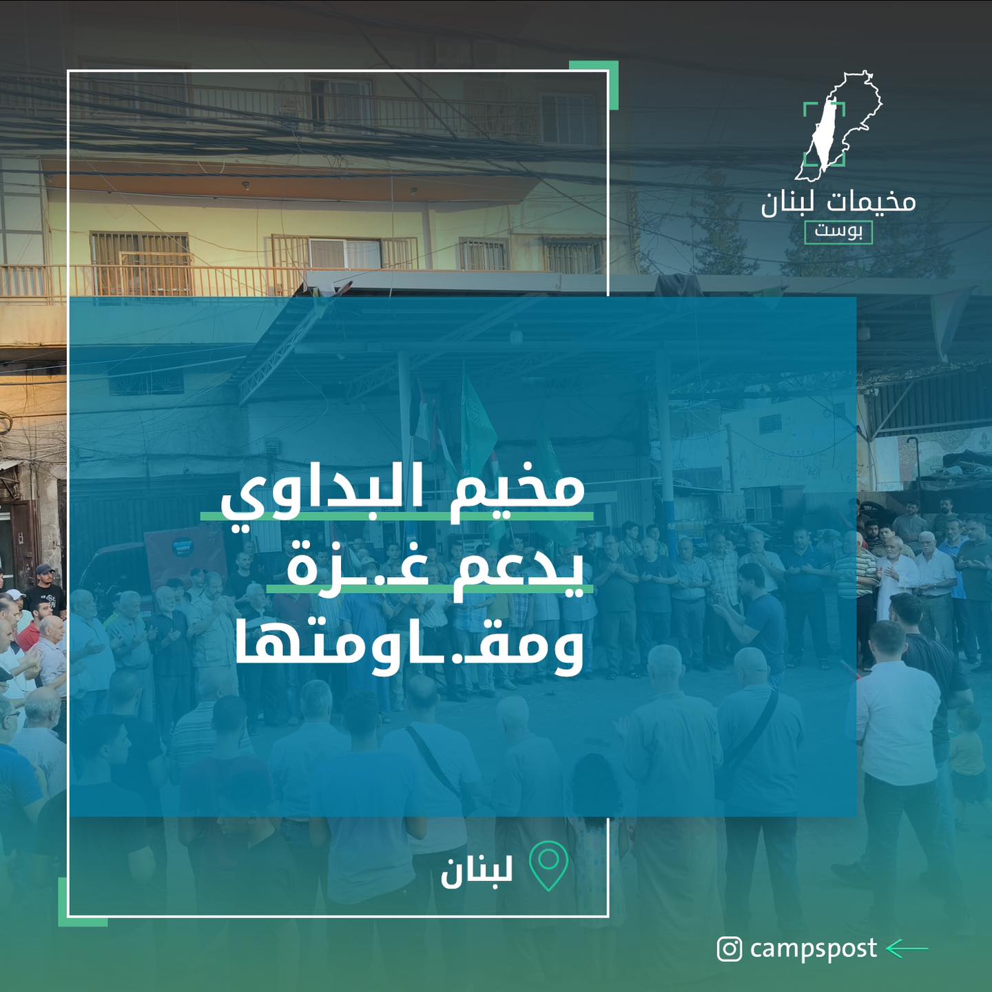 اعتصم أهالي مخيم البداوي في وقفة تضامنية إسنادًا لغـ.ـزة؛ تحت عنوان: “النصر حليف المقاومـ.ـة” ، تخللها كلمات من ممثلي الفصائل والفعاليات المشاركة، كما اختتمت بالدعاء.