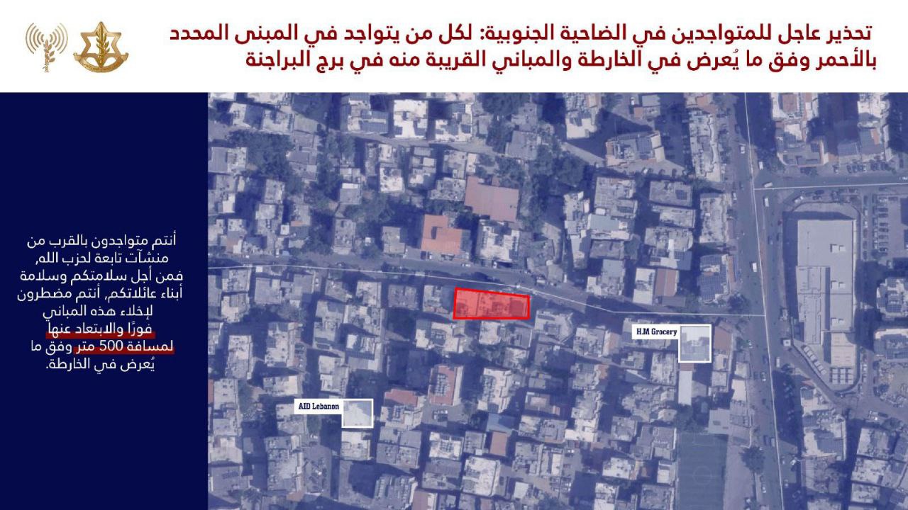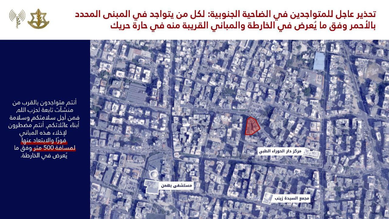 جيش الاحتلال يهدد حارة حريك والليلكي وبرج البراجنة في الضاحية الجنوبية لبيروت
