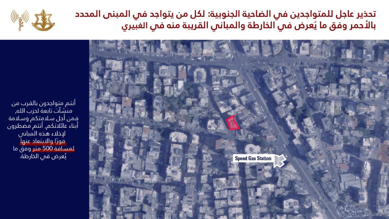 جيش الاحتلال يهدد سكان منطقة الغبيري في الضاحية الجنوبية