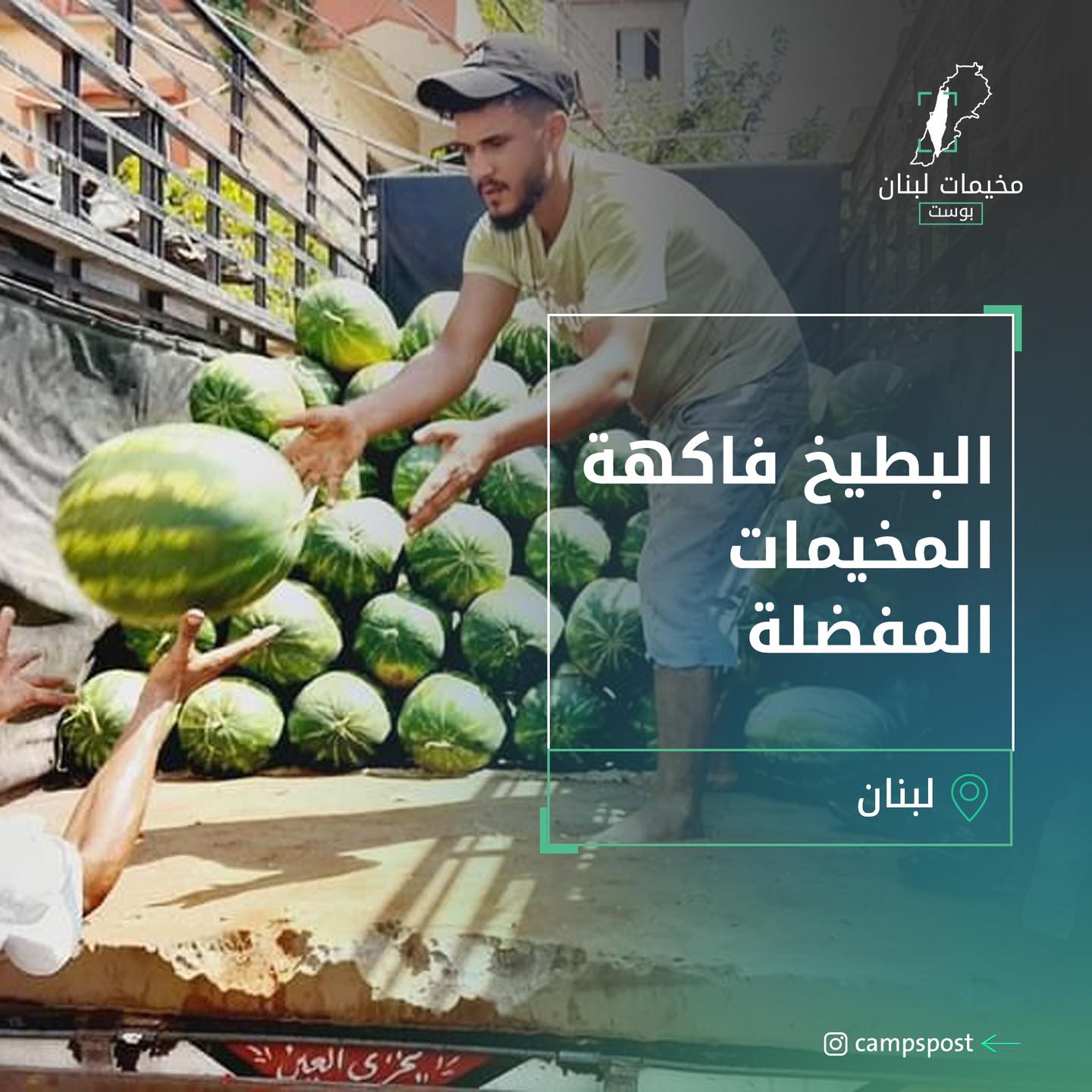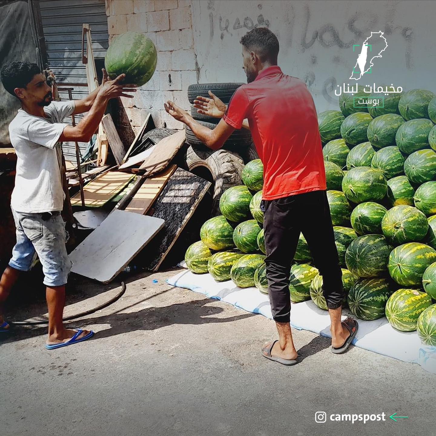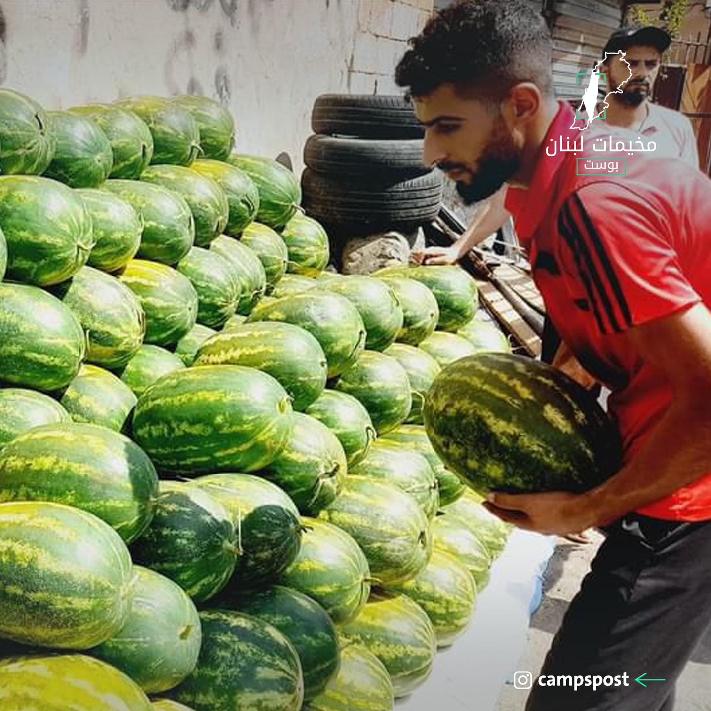 في ظل ارتفاع درجات الحرارة لمعدلات قياسية يتربع البطيخ على عرش الفاكهة الصيفية الأكثرُ شعبيةً في المخيمات الفلسطينية في لبنان🍉 حيث يكاد لا يخلو شارع من بسطة بطيخ، كما أنها تشكل تجمعاً شبابياً للسهرات والأحاديث خصوصاً عن الأوضاع في غـ.ـزة الجريحة.