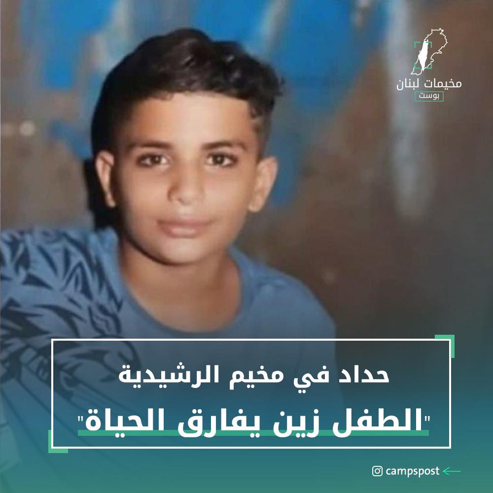 حداد في مخيم الرشيدية للاجئين الفلسطينين في جنوب لبنان، بعد وفاة الطفل “جود سالم” في حادث مؤسف.