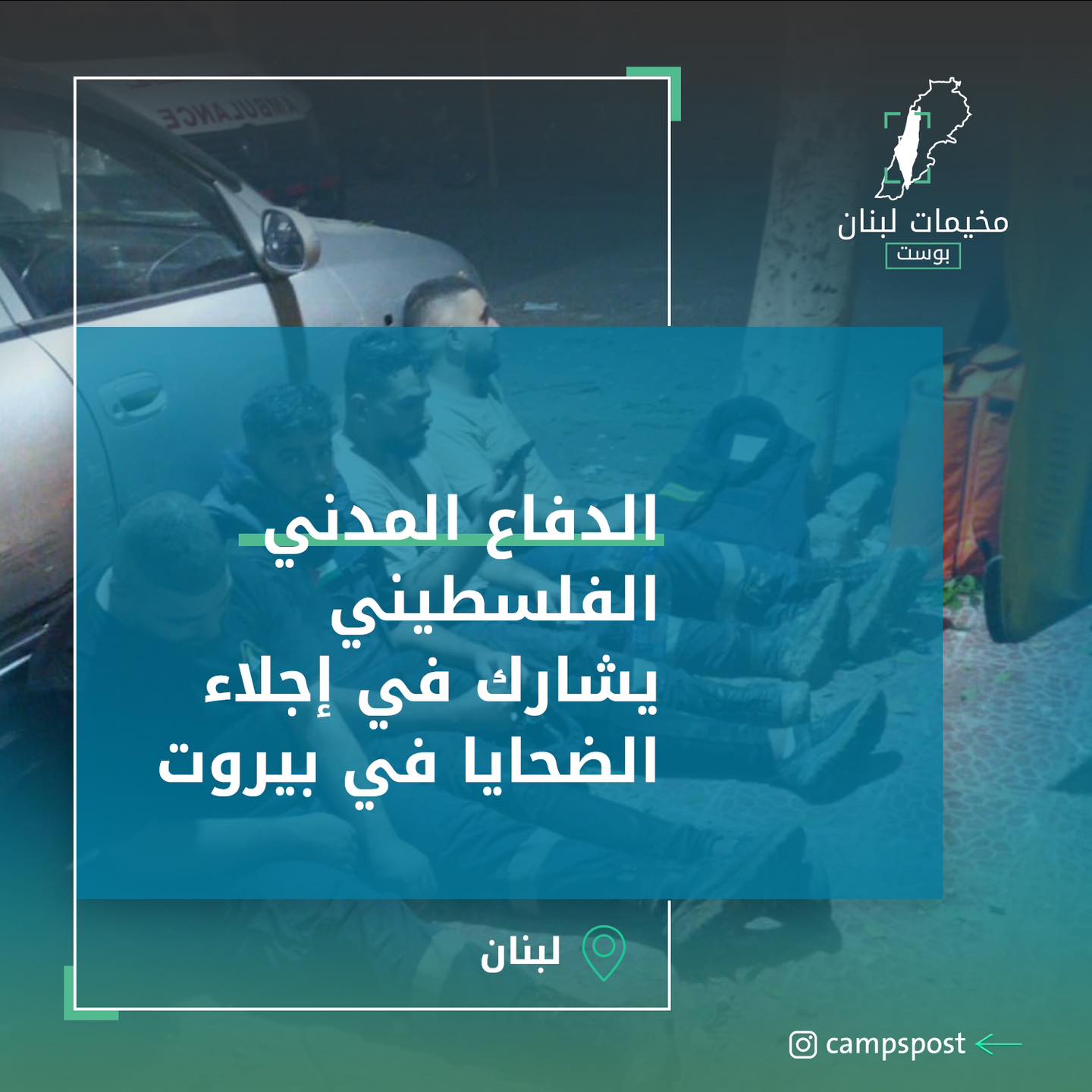 الدفاع المدني الفلسطيني يشارك في إجلاء الضحايا في بيروت