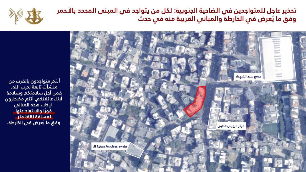 جيش الاحتلال يهدد بقصف مباني سكنية في حدث بيروت وبرج البراجنة بالضاحية الجنوبية لبيروت