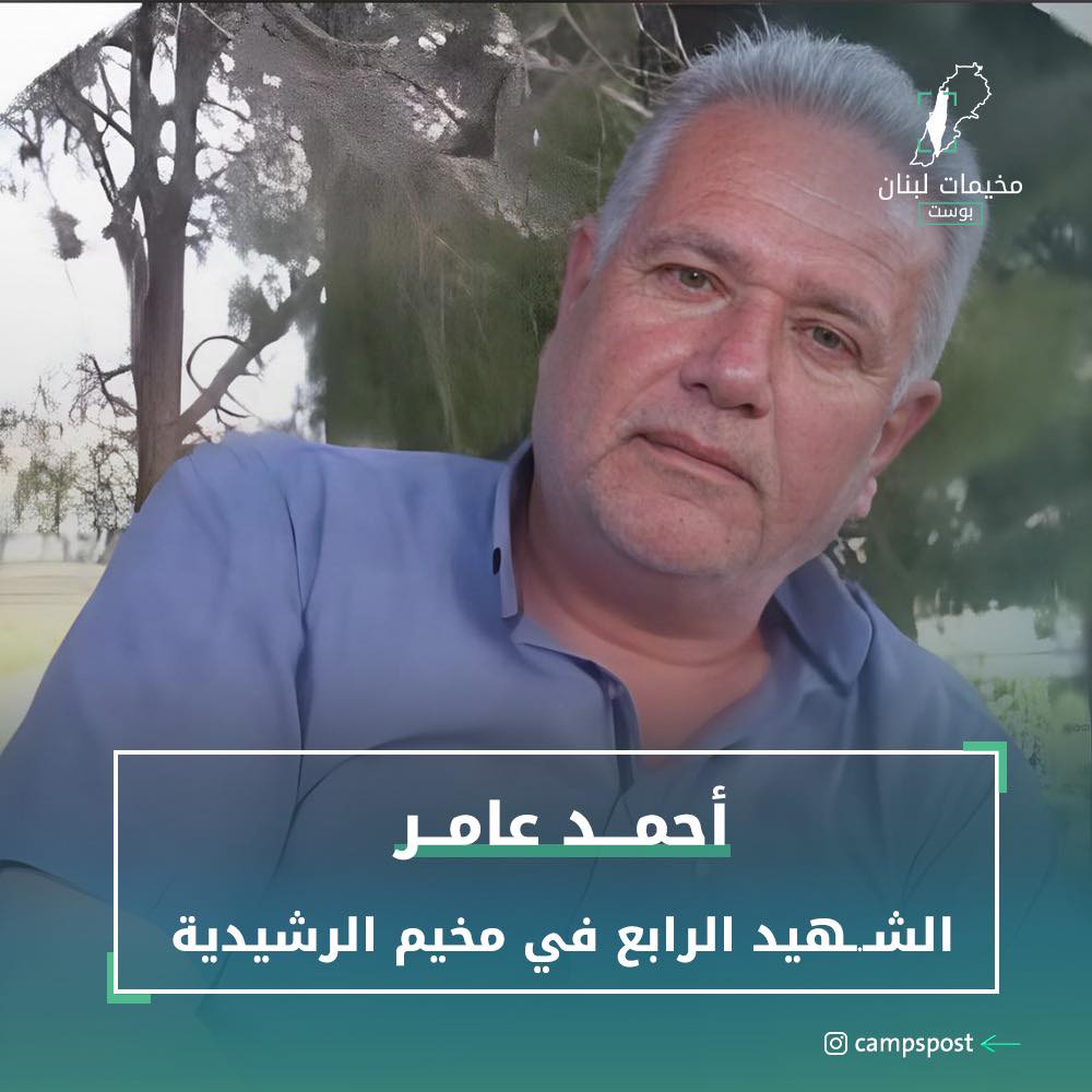 قافلة الشهـ.ـداء مستمرة.. مخيم الرشيدية يزف شهـ.ـيده الرابع، أحمد عامر، جرّاء المجـ.ـزرة التي اقترفها الاحتـ.ـلال يالمخيم. العم “أبو محمد” من أصحاب الخلق الطيب، ودائم النشاط والعمل من أجل مخيمه وأبناء شعبه.