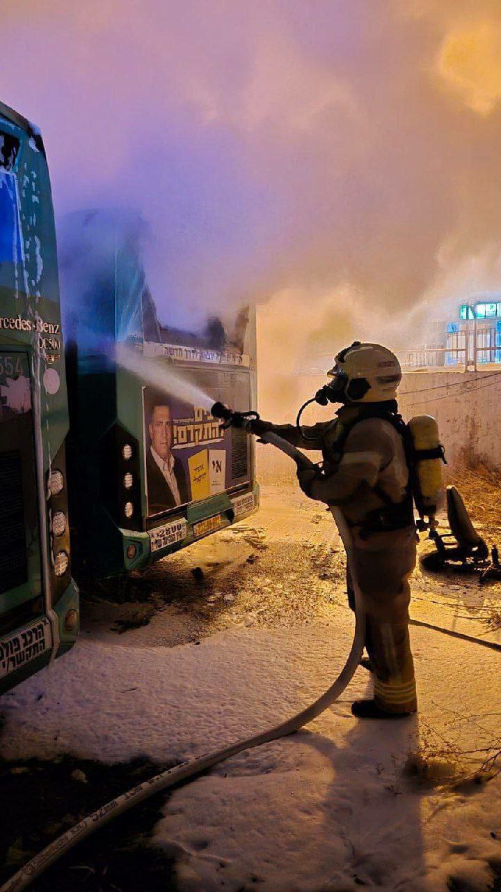 من مكان سقوط صاروخ أطلق من لبنان على المحطة المركزية للحافلات في مستوطنة “كريات شمونة”