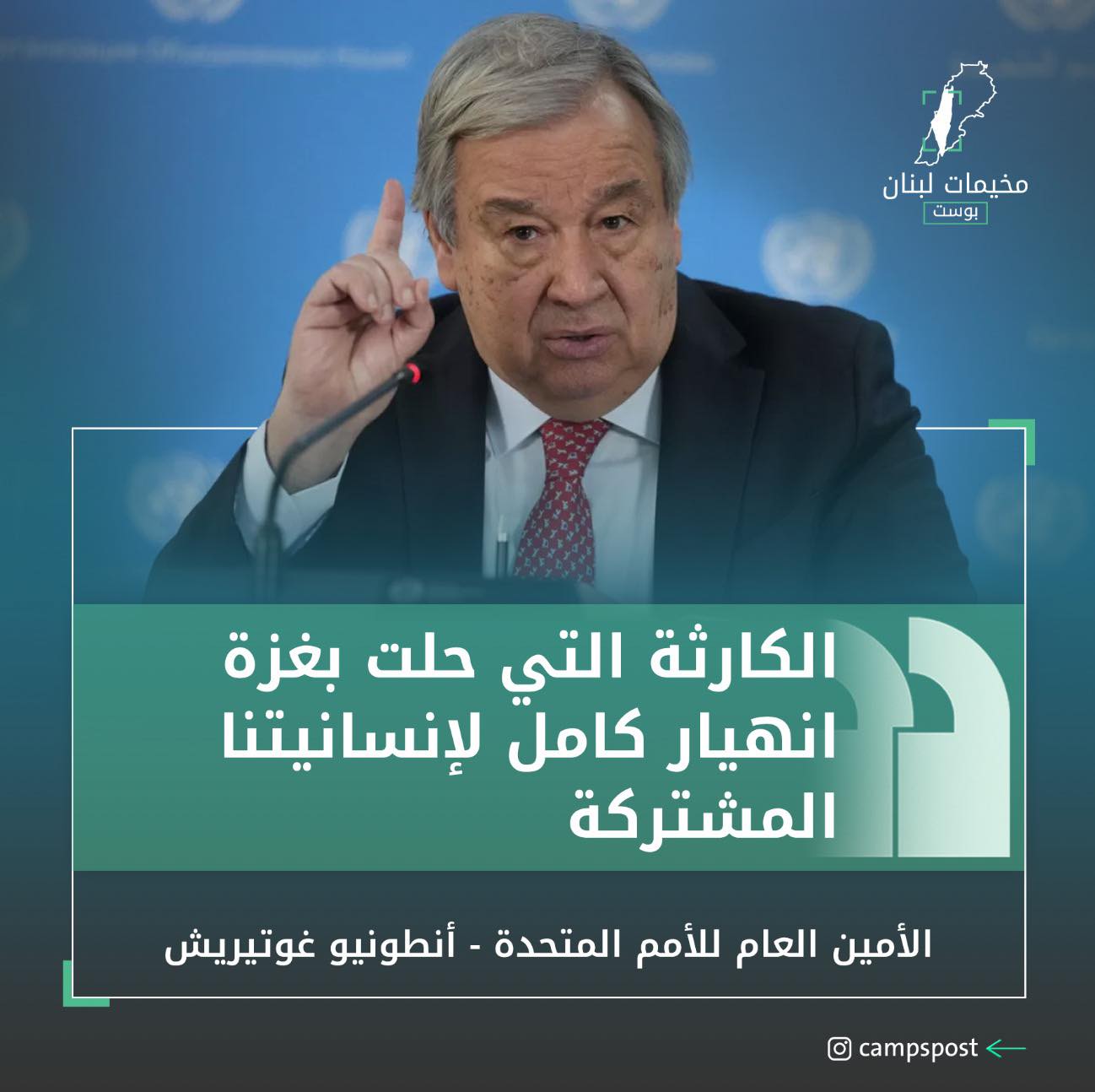 يدرك غوتيريش حجم الكارثة والمصيبة في غـ.ـزة. كما أنه يدرك هذه الأبـ.ـادة، المترافقة بصمت مشين، ستجعل التاريخ يلعن كل من كان شريكاً وصامتاً في دماء الأبرياء.