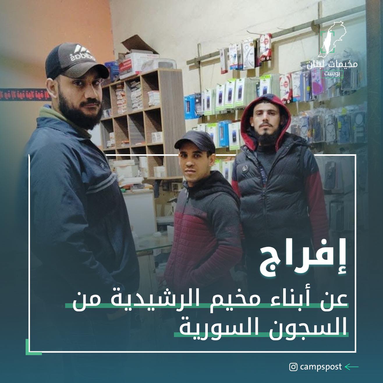 بعد أكثر من ثلاثة سنوات، خرج أبناء مخيم الرشيدية “محمد ونعيم سالم” والشاب “سامي ضاهر” من السجون في سوريا بعد اعتقالهم جرّاء محاولتهم الهجرة إلى اوروبا.