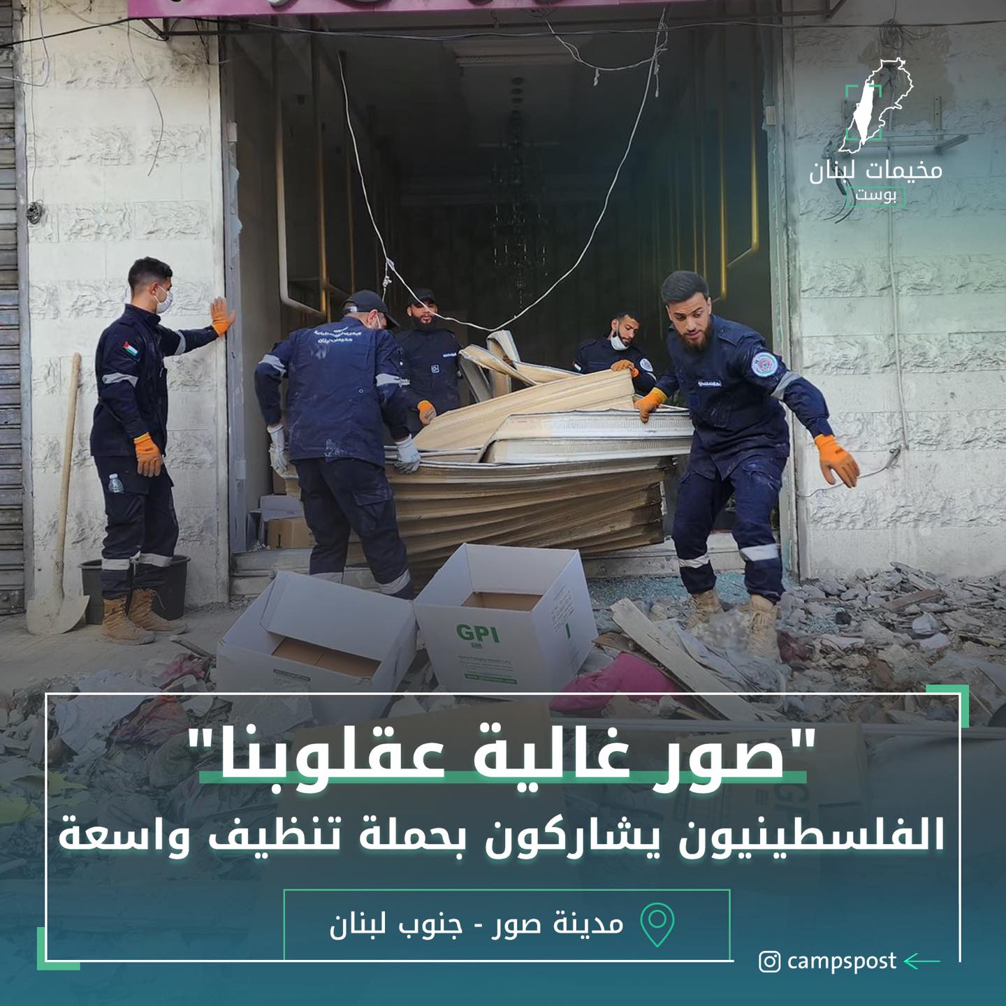 هبّ الشباب الفلسطينيون من أبناء المخيمات في جنوب لبنان، للمشاركة في حملة تنظيف مدينة صور الجنوبية، بعد الدمار الكبير الذي سببه الاحتـ.ـلال.