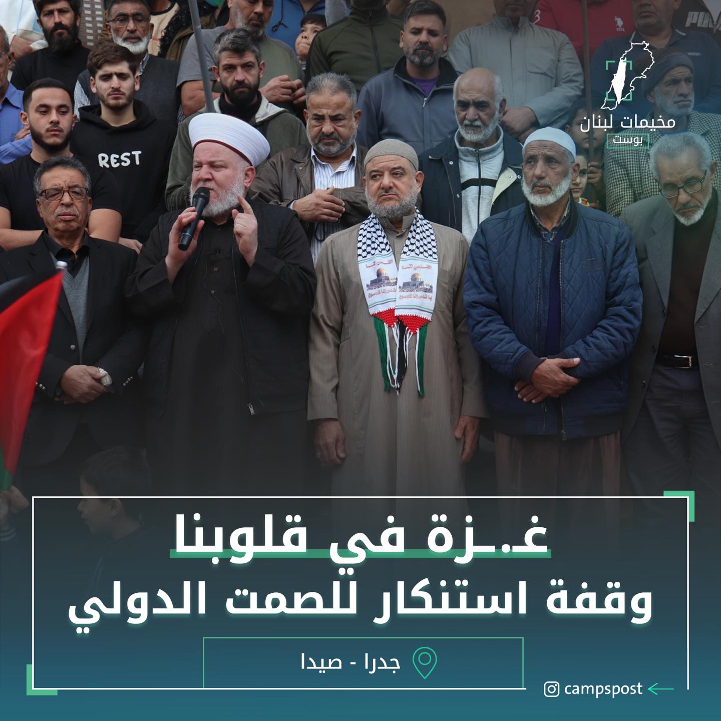 اعتصم عدد من اللاجئين الفلسطينين في منطقة جدرا، شرق مدينة صيدا، تنديداً بالصمت العربي والدولي الذي تتعرض له غـ.ـزة، وحرب الابـ.ـادة المستمرة ضد أبناء القطاع.