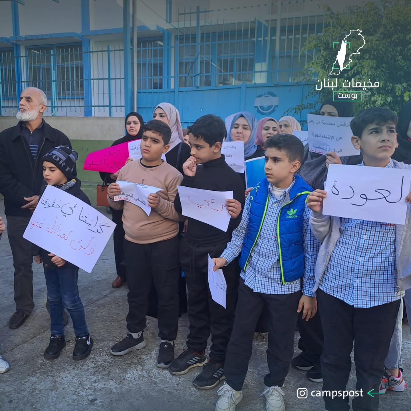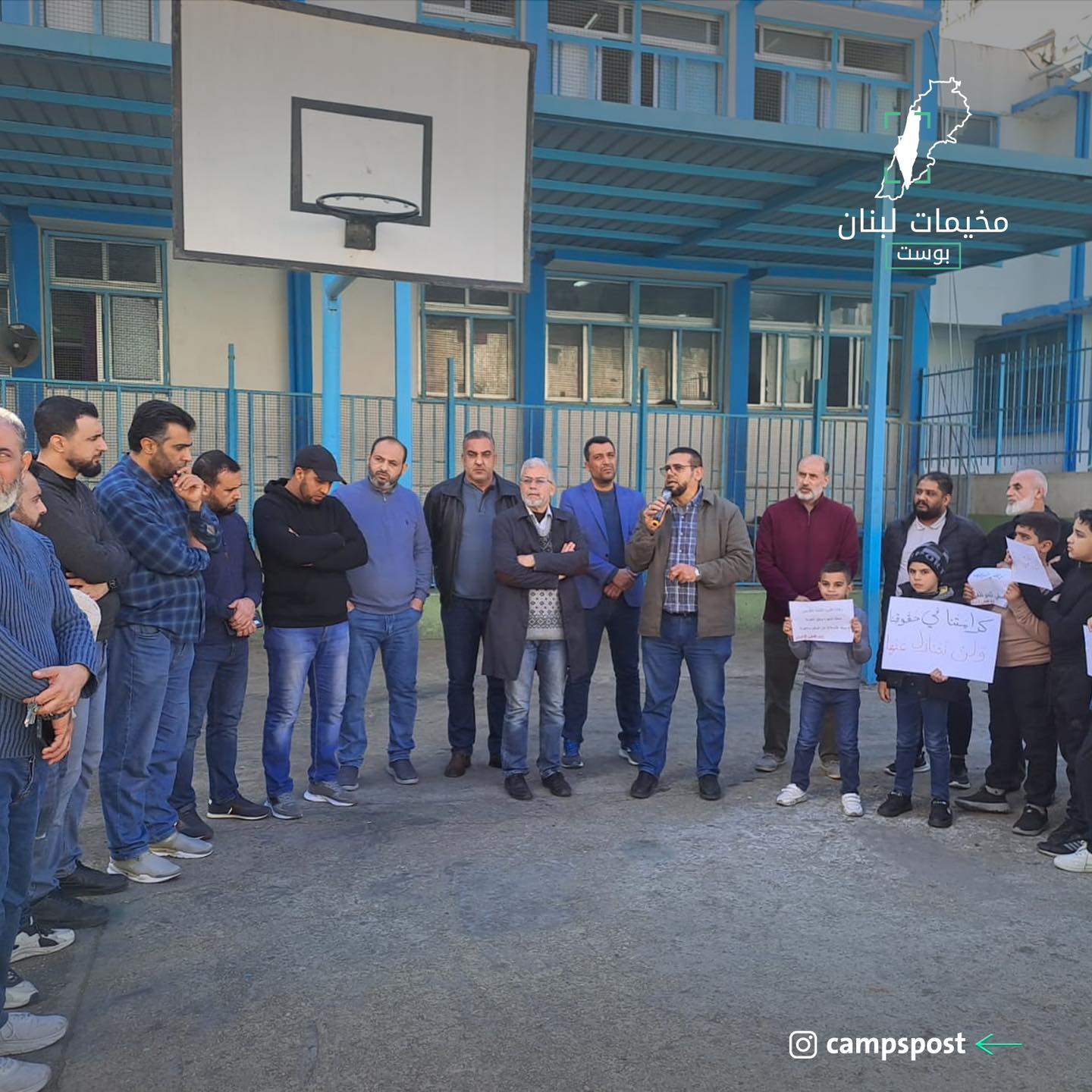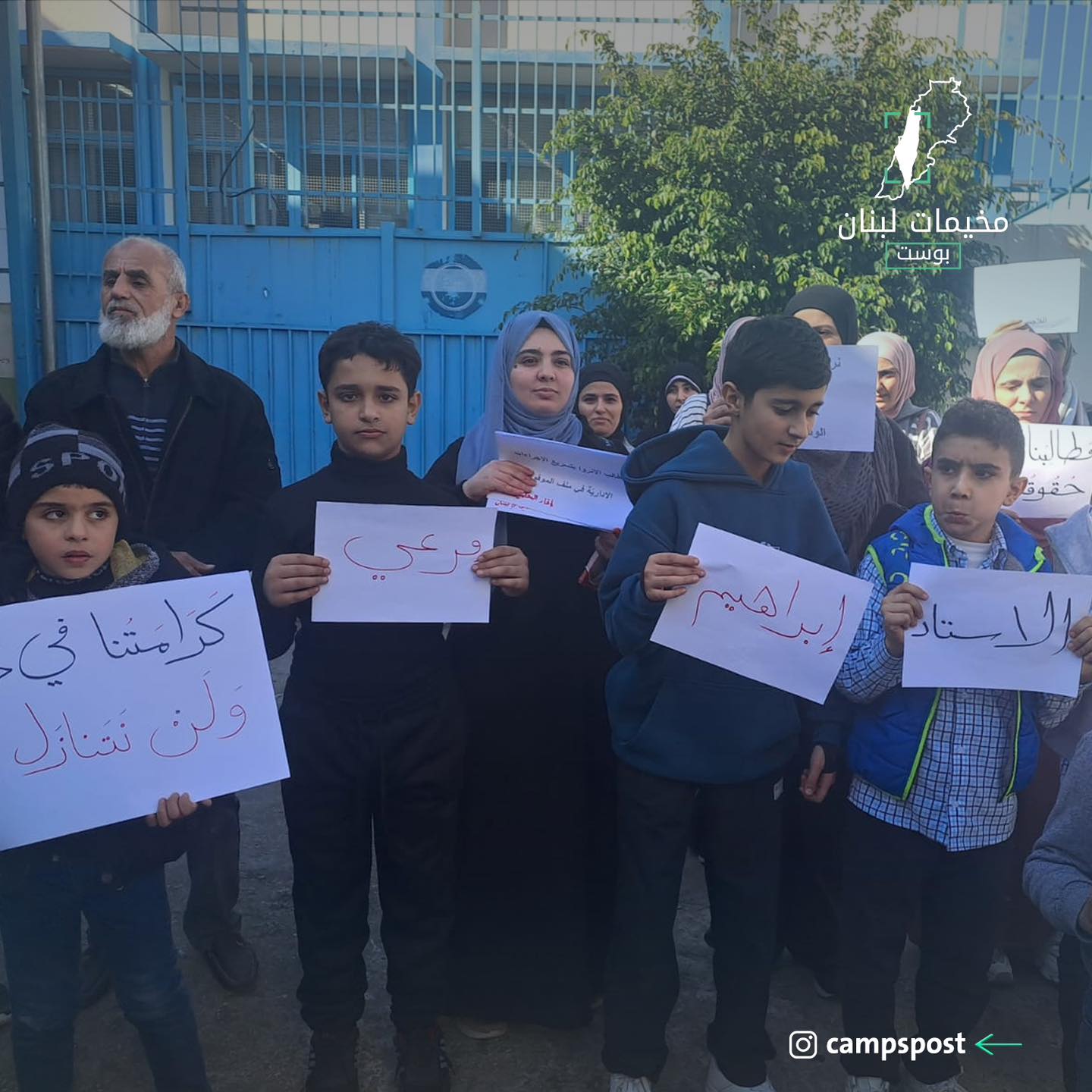 اعترض الكادر التعليمي والطلاب في مخيم عين الحلوة، على سياسة الاونروا وقراراتها التعسفية بإيقاف عدد من المعلمين بسبب مواقفهم الداعمة لفلسطين. وطالب المعتصمون من الوكالة بضرورة العودة عن قرارها الجائر.
