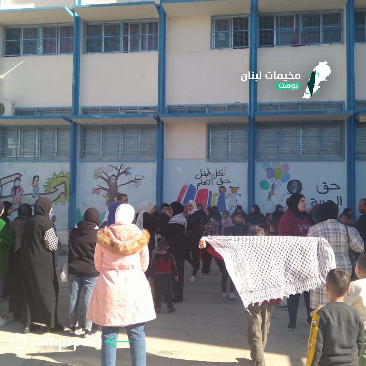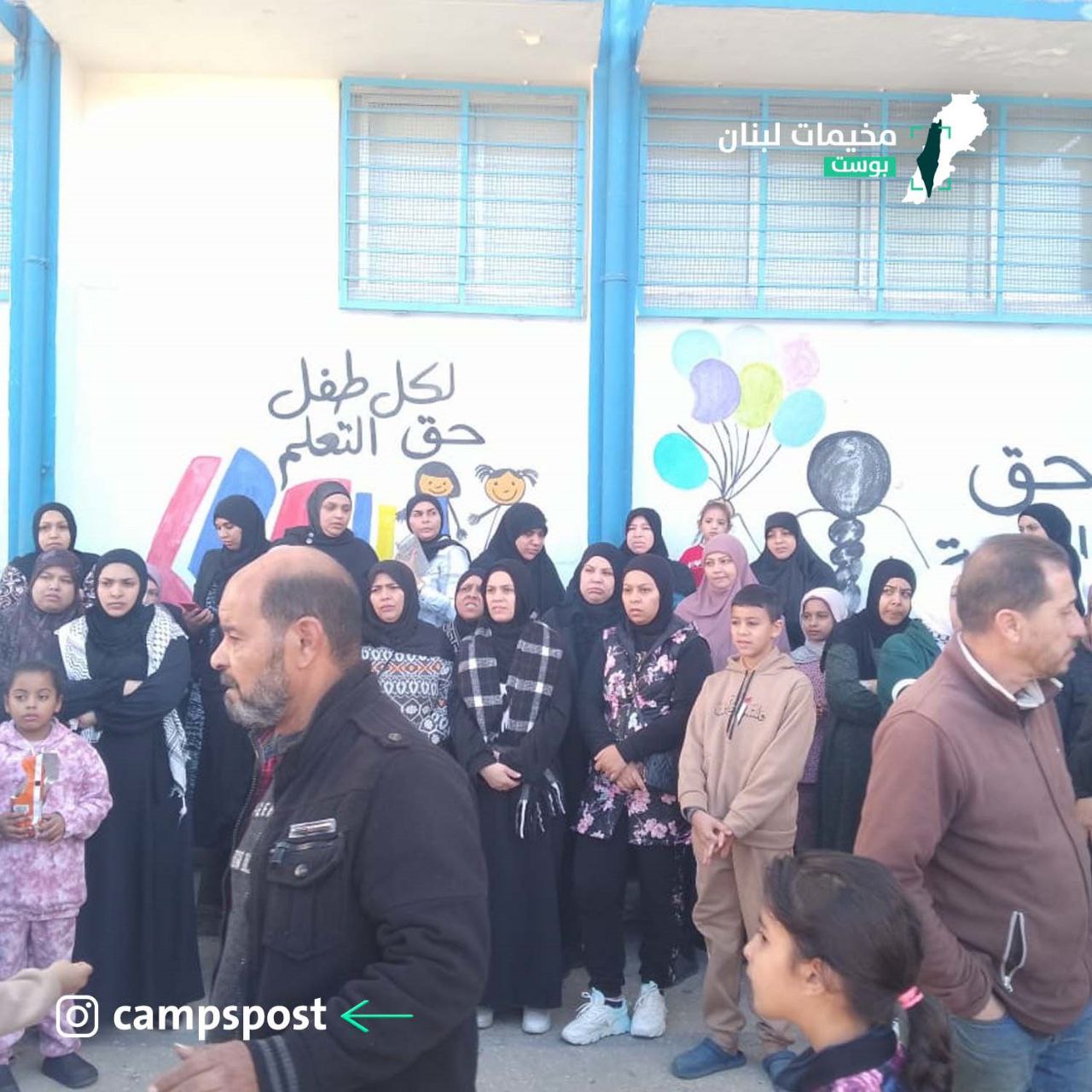 اعتصام الأهالي في مخيم البرج الشمالي جنوبي لبنان أمام مدرسة فلسطين احتجاجاً على إقفال المدرسة من قِبل الأونروا، ونقل التلاميذ إلى مدرسة جباليا