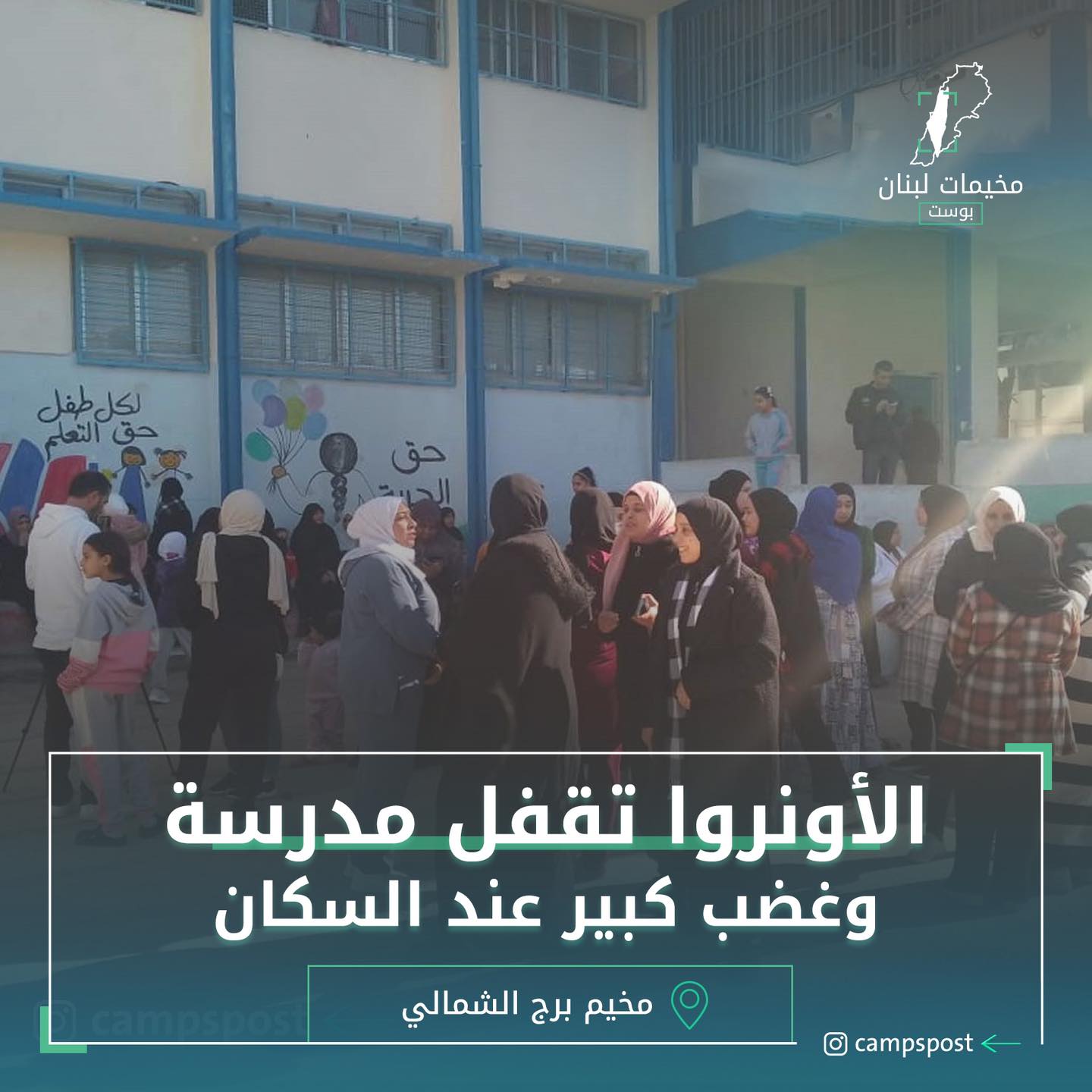 أغلقت الأونروا مدرسة “فلسطين” في مخيم برج الشمالي جنوب لبنان، ونقلت جميع الطلاب إلى مدرسة “جبـ.ـاليا”، كما جعلت الدوام صباحي ومسائي.