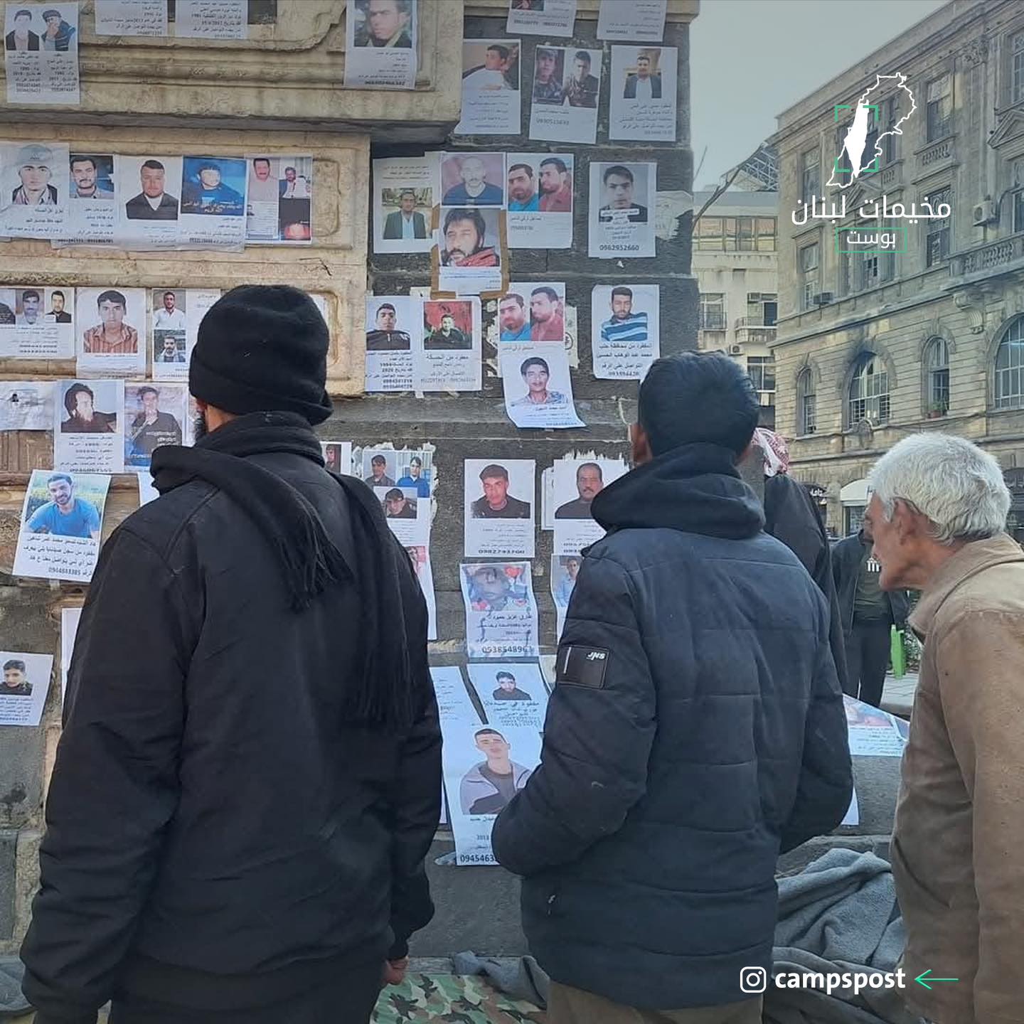 تنتشر في شوارع العاصمة السورية دمشق، صوراً لمفقودين ومعتقلين سابقين في سجون النظام السوري السابق. ومن بين هؤلاء المعتقلين، الآلاف من الفلسطينيين الذين اختفوا ولم يُعرف لهم سبيل.
