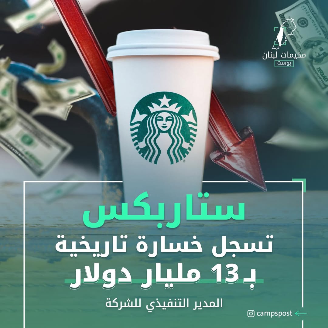 منذ بدأ العـ.ـدوان على غـ.ـزة، وبدأت شركة “ستاربكس” بتلقي خسائر كبيرة لم تشهدها من قبل. حتى صرّح المدير التنفيذي للشركة أن الخسائر وصلت إلى 13 مليار، متهرباً من الإفصاح أن السبب وراء تلك الخسائر هي المقاطعة. علماً أن ااشركة كانت قد أقفلت عدة محال لها في أنحاء مختلفة من العالم، مثل مصر وإندونيسيا وتركيا بسبب تدني مستويات الشراء لدرجة كبيرة.