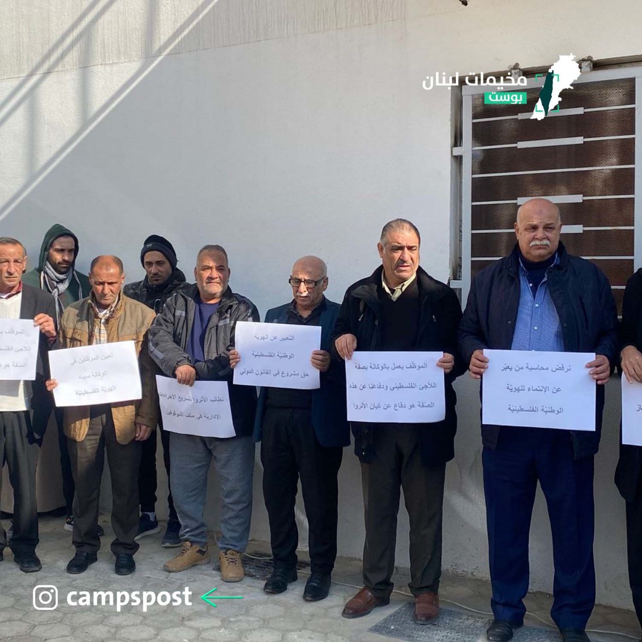 مشاهد من اعتصام الفصائل الفلسطينية واللجان الشعبية أمام مكتب مدير خدمات مخيم نهر البارد شمال لبنان ذلك للتعبير عن رفض واستنكار للقرار الجائر بحق المعلمين.