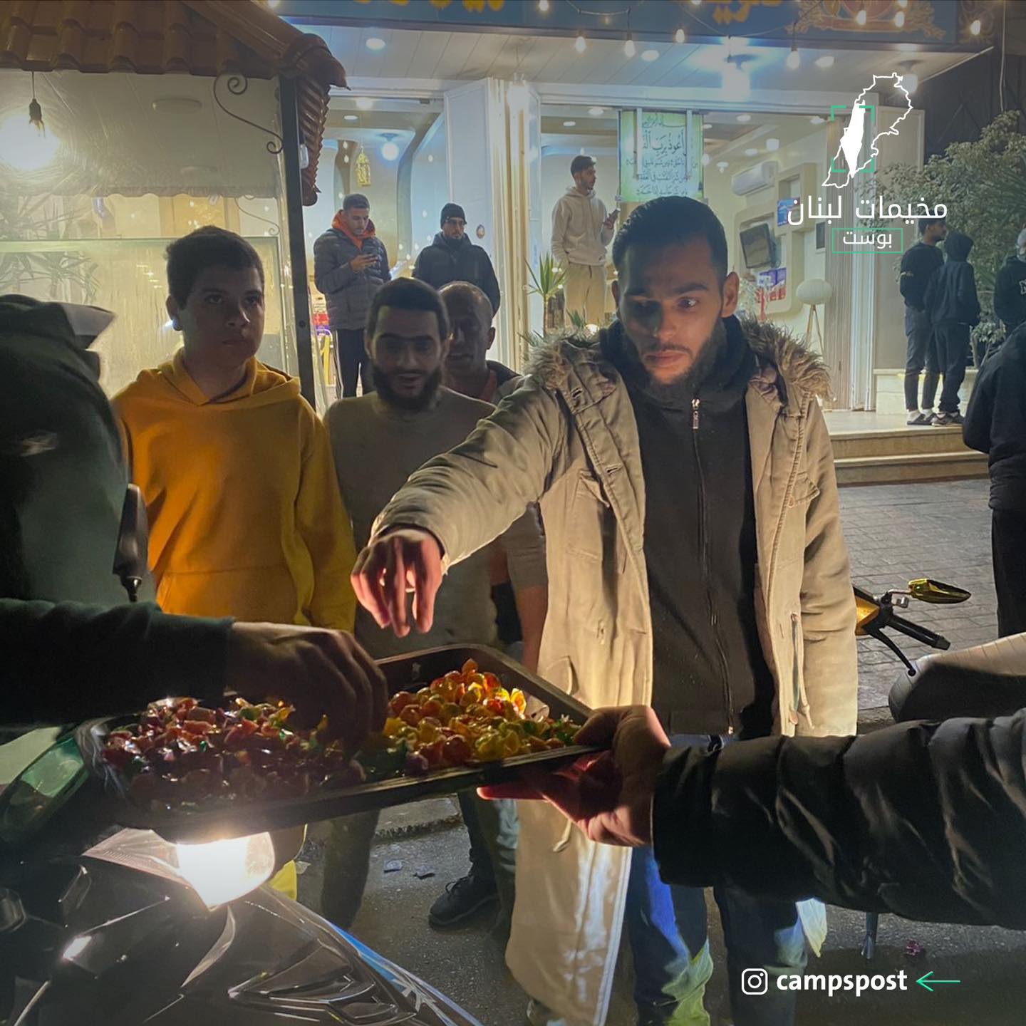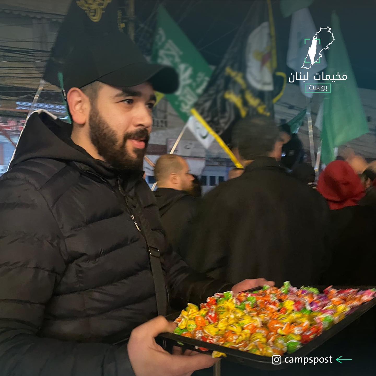 توزيع حلوى ابتهاجا في مخيم نهر البارد