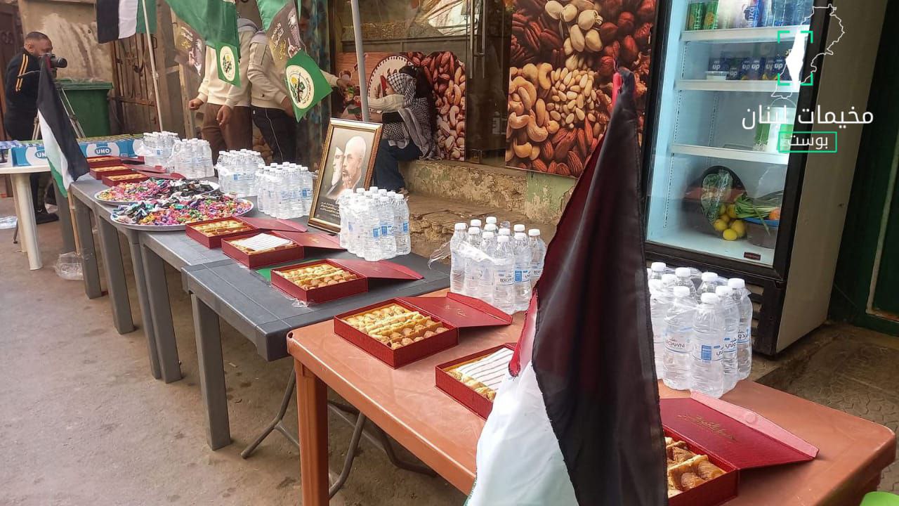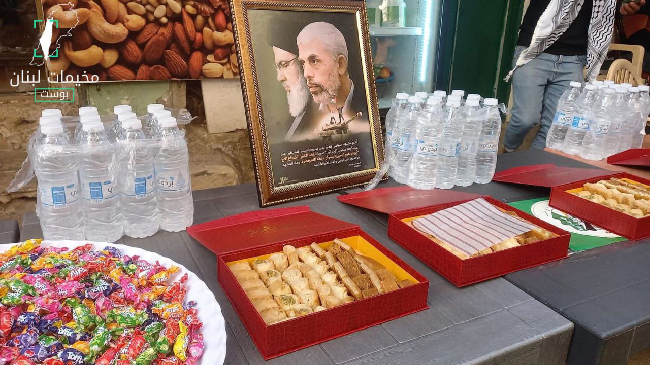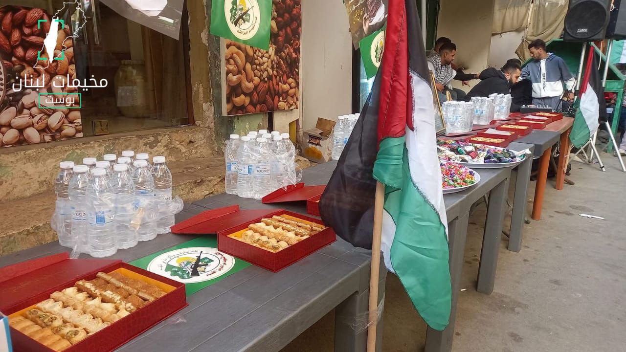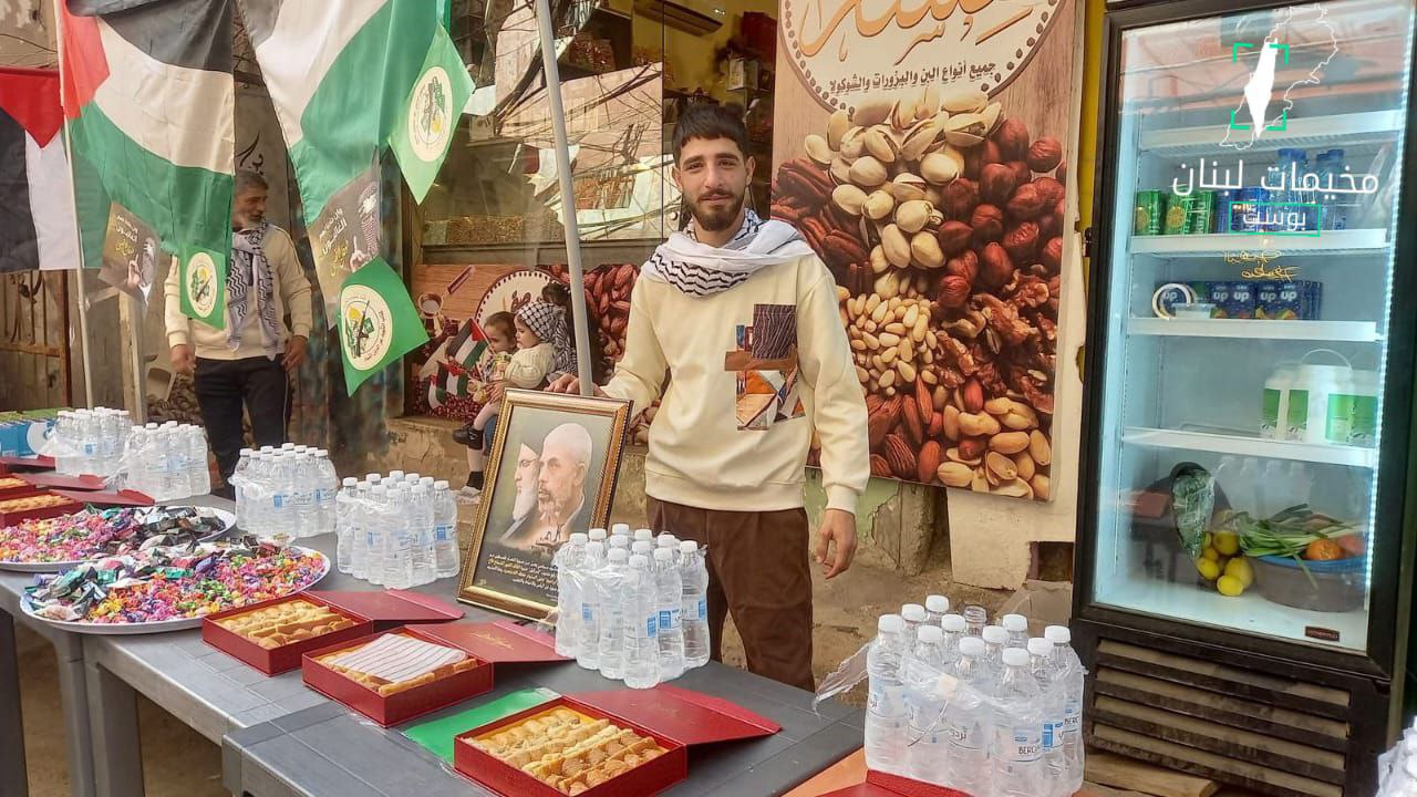 الأهالي في مخيم برج البراجنة بالعاصمة بيروت يوزّعون الحلوى ابتهاجاً بوقف إطلاق النار في قطاع غزة وانتصار المقاومة.